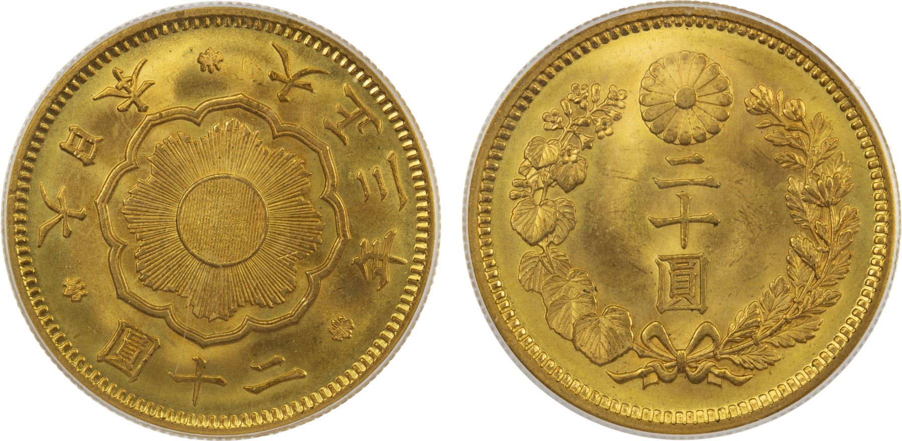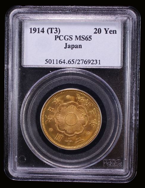 JAPAN: Taisho, 1912-1926, AV 20 yen, year 3 (1914), PCGS MS65
