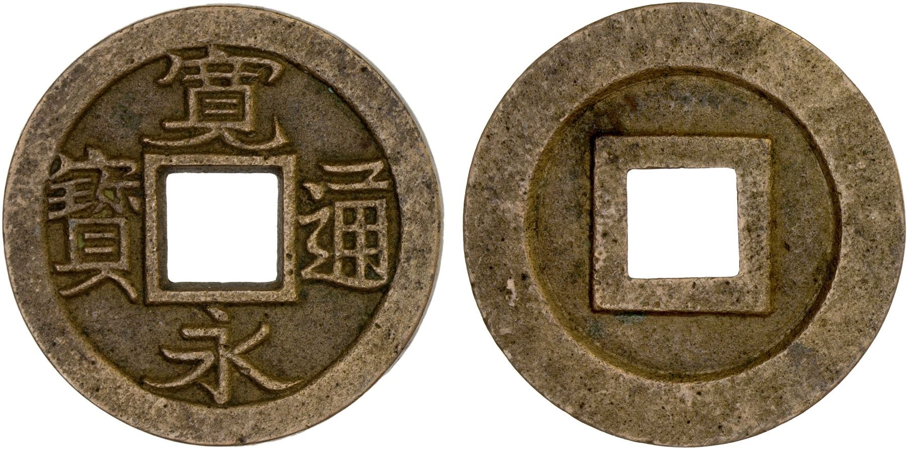 JAPAN: Tokugawa, 1603-1868, AE mon (3.56g), Kosuge Mint, Honjo, Edo, Musashi, H-4.217s, JNDA-133.72, Shin Kanei Tsuho type, bronze bosen (seed or mother) coin for iron type, cast 1859-67, XF.
