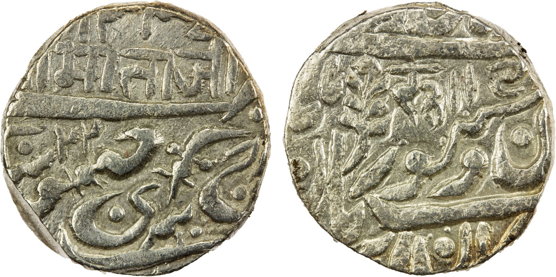 JODHPUR: AR rupee (11.35g), Sojat, ND, KM-258 variant, jhar and sword, with sri mataji, VF-EF, R.