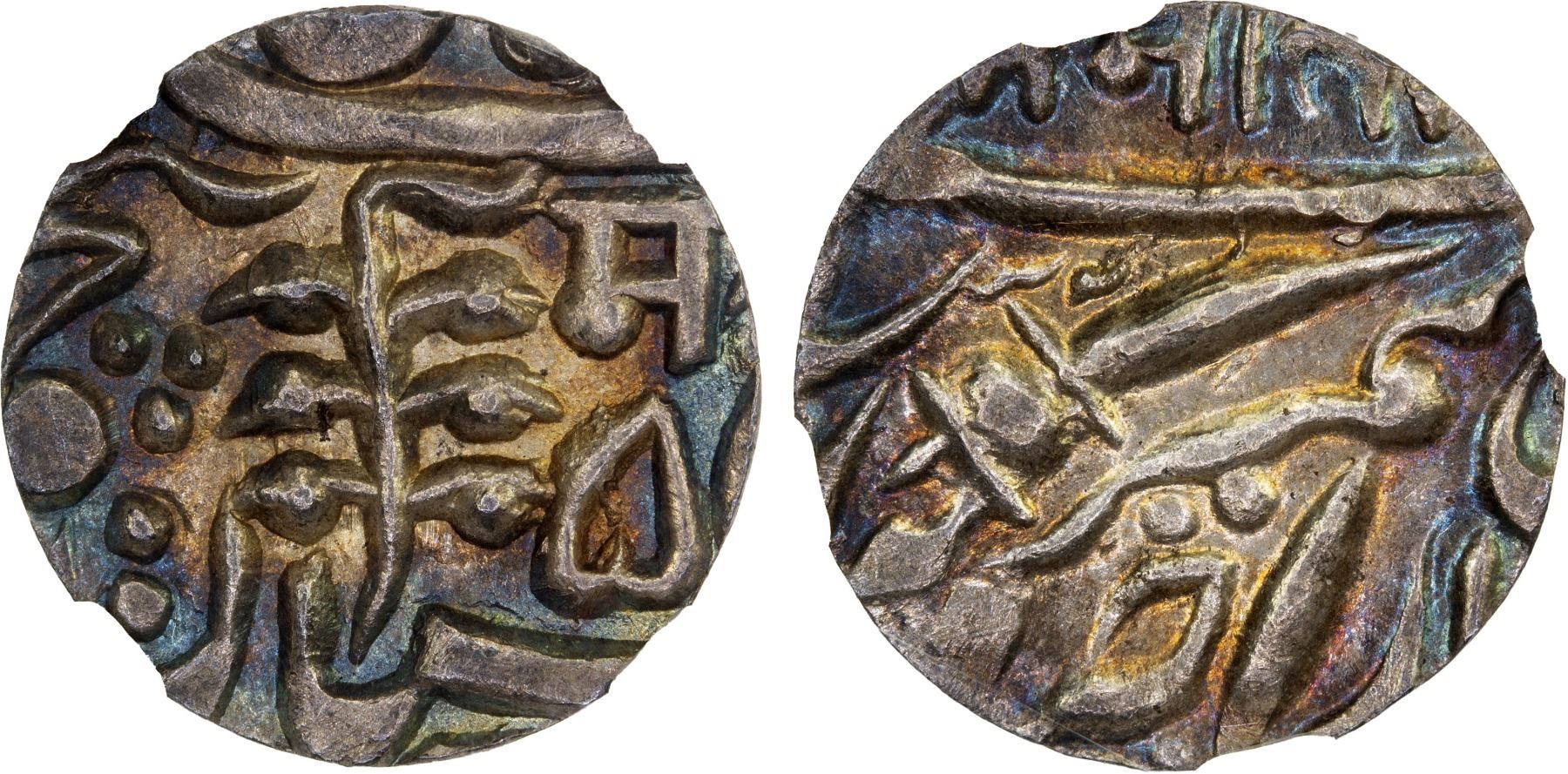 JODHPUR: Sumer Singh, 1911-1918, AR 1/8 rupee, ND, KM-113, Y-29, beautiful album toning, boldly struck, scarce type, NGC graded MS63, ex The 1914 Collection. Finest graded at both NGC and PCGS.