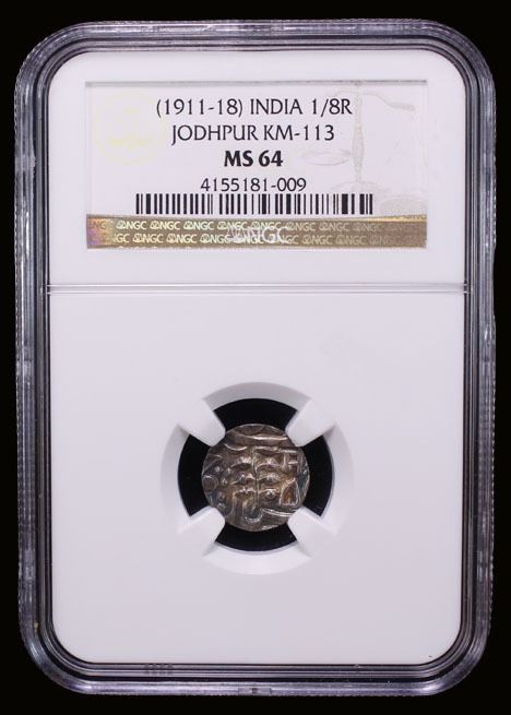 JODHPUR: Sumer Singh, 1911-1918, AR 1/8 rupee, ND, NGC MS63