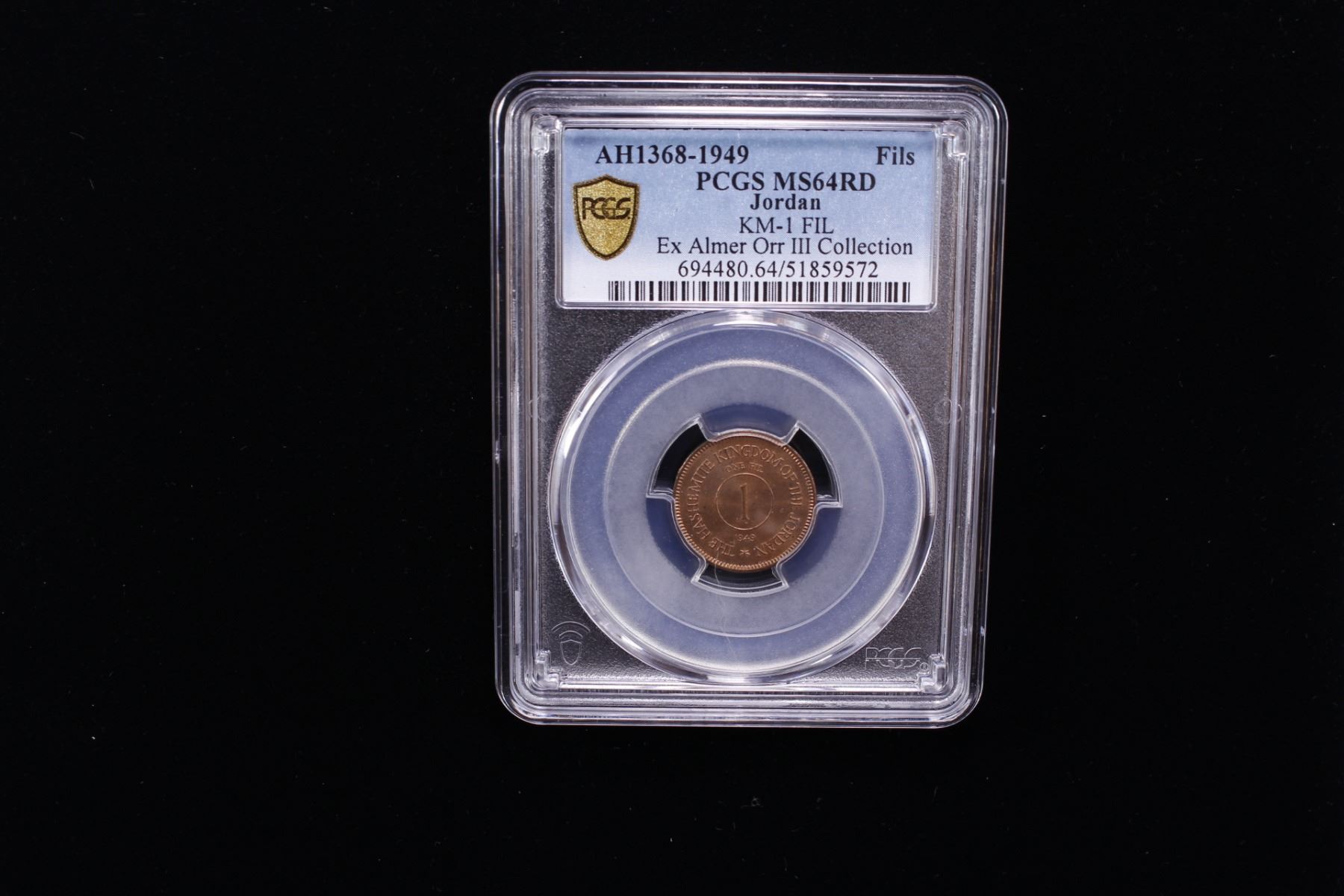 JORDAN: Abdullah I, 1946-1951, AE fils, 1949/AH1368, KM-1, scarce "fil" variety, a wonderful example, PCGS graded MS64, ex Almer H. Orr III Collection.