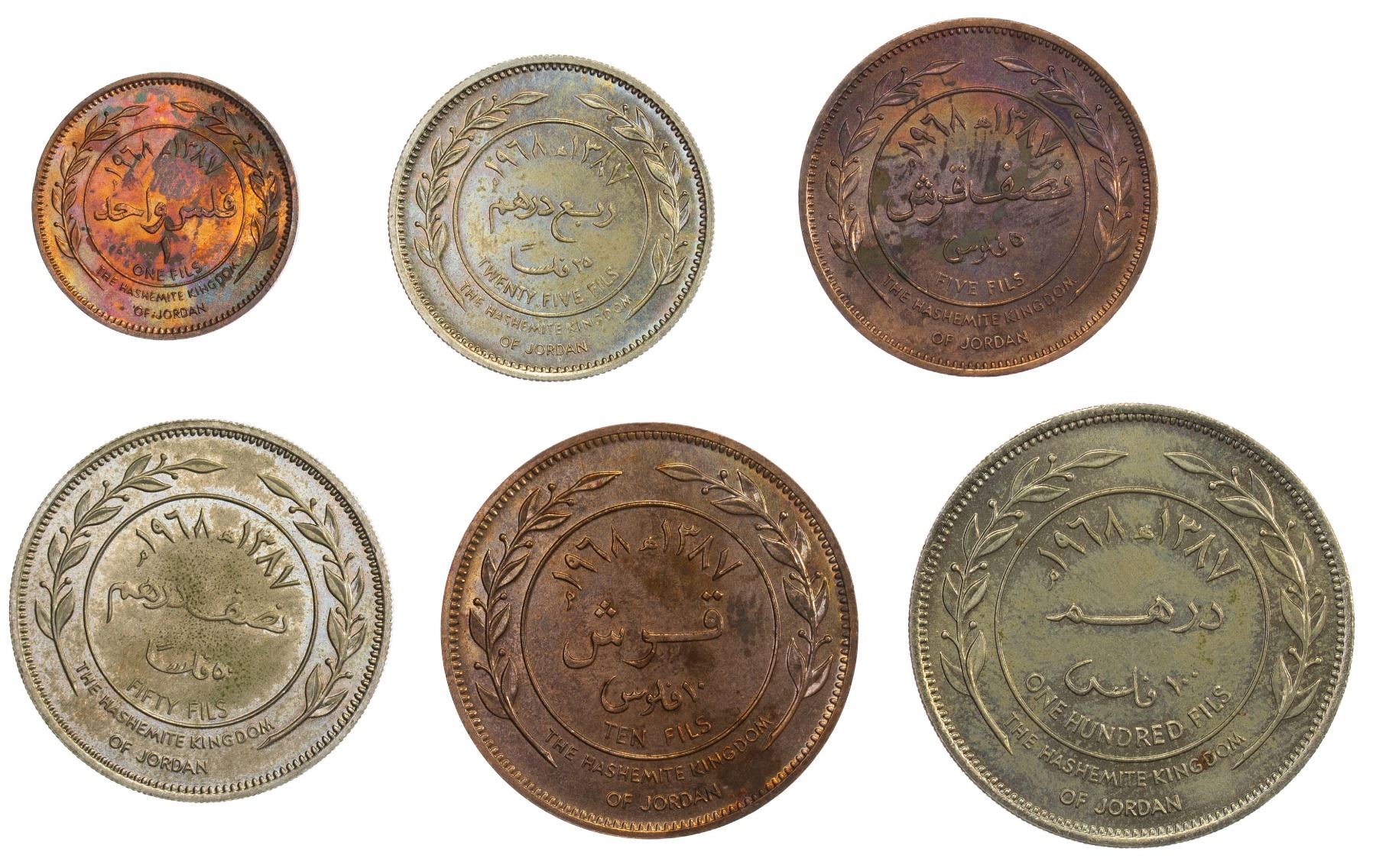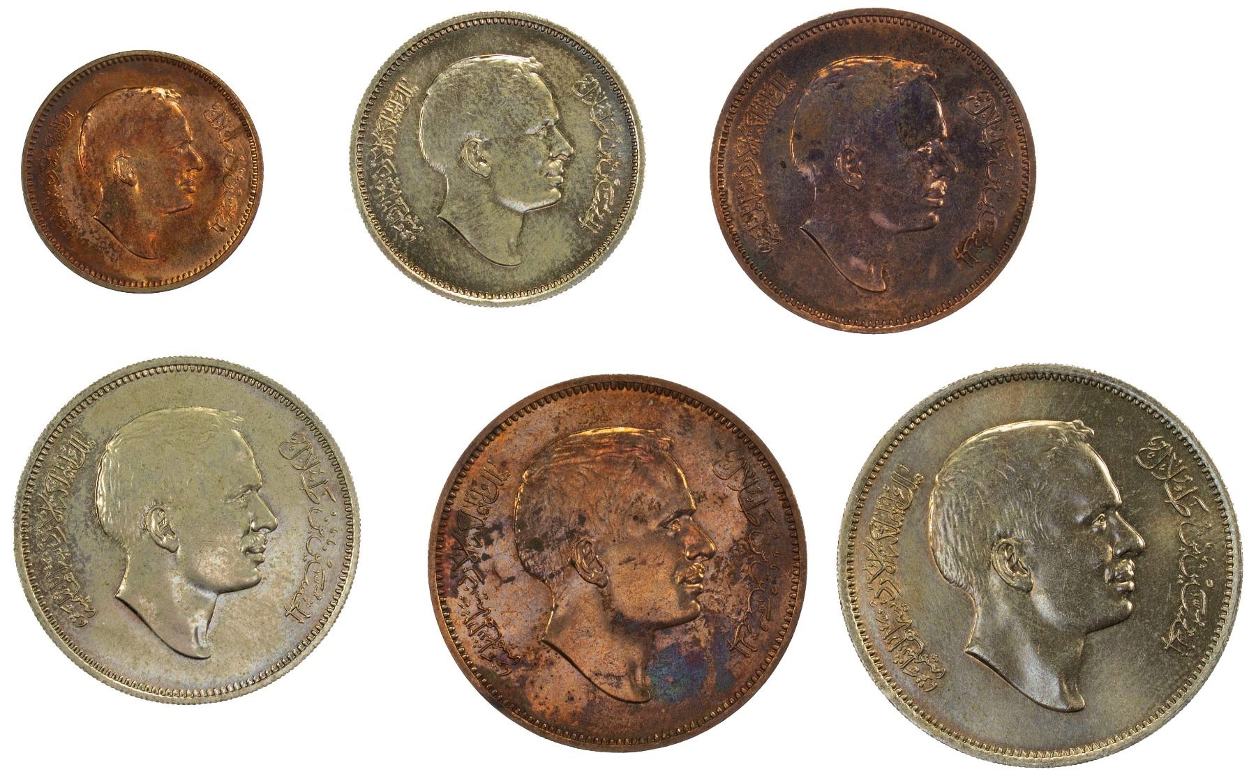 JORDAN: Hussain, 1952-1999, 6-coin specimen set, 1968/AH1387
