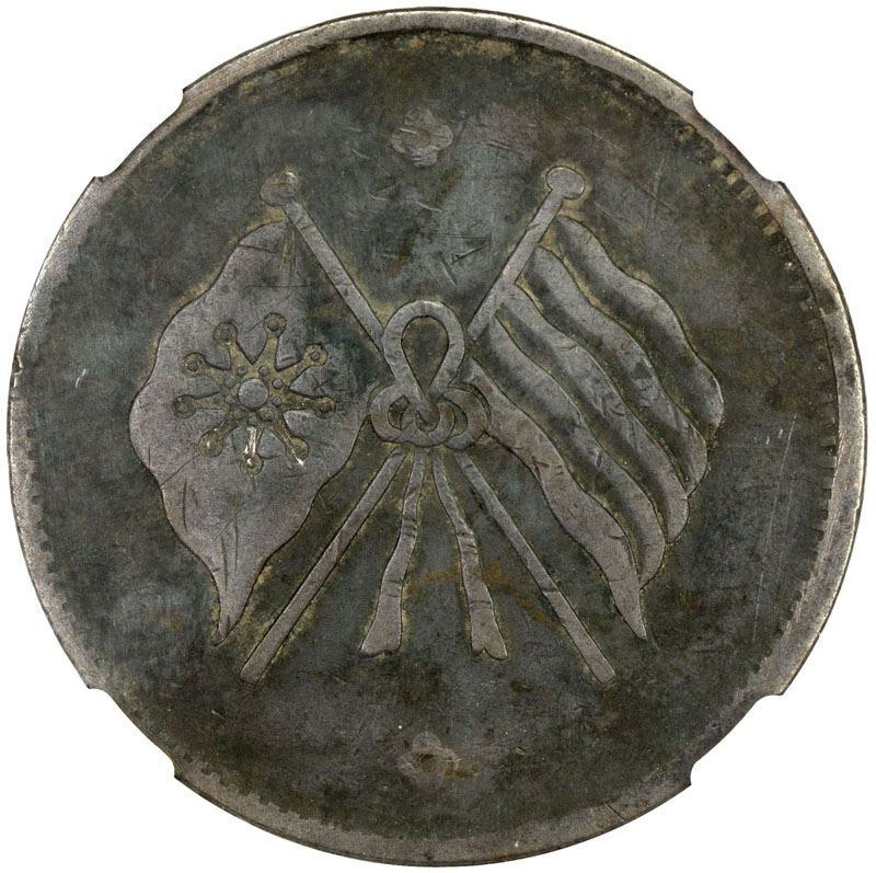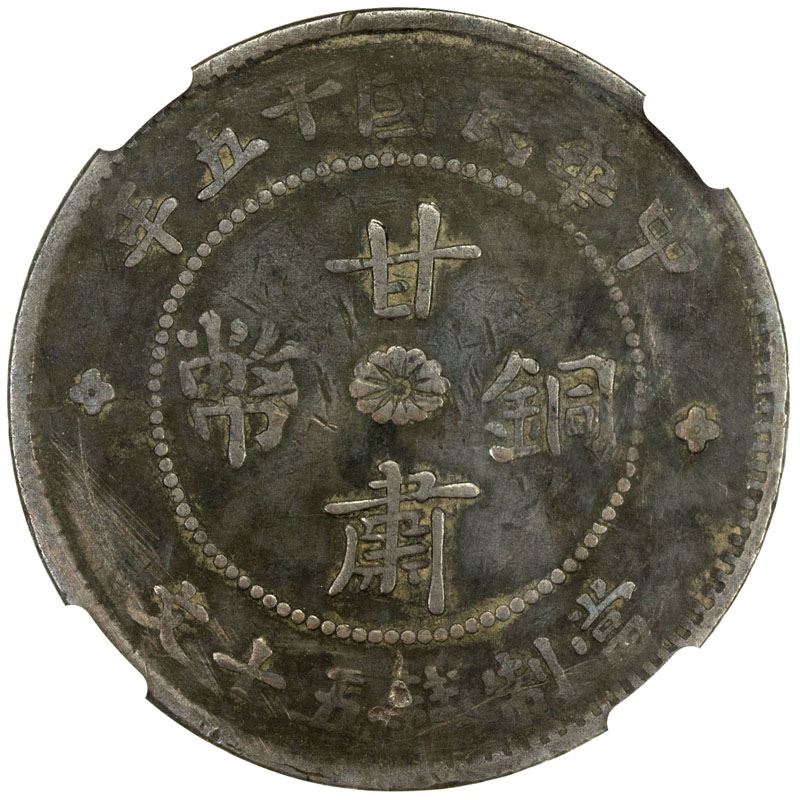 KANSU: Republic, AE 50 cash, year 15 (1926), Y-408, crossed Wuchang Uprising and five-colored flags, scratches, NGC graded Fine details.