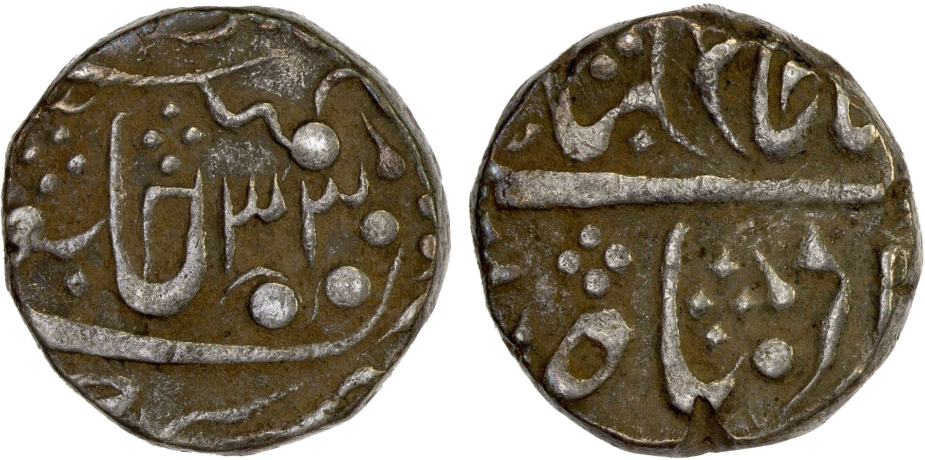 KARAULI: AR rupee, year 33, KM-31, in the name of the Mughal Emperor Bahadur Shah II, VF.