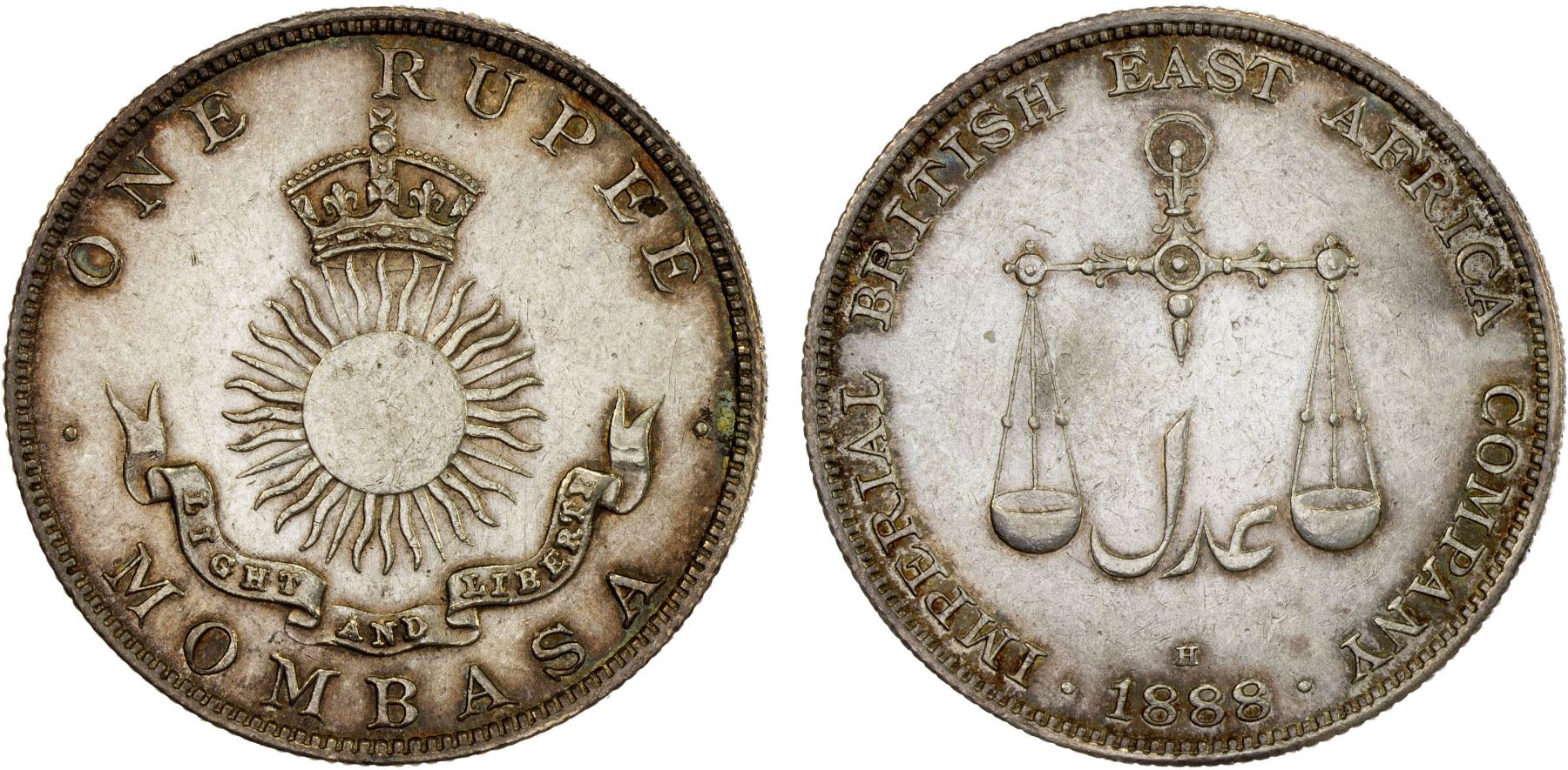 KENYA: MOMBASA: Victoria, 1888-1896, AR rupee, 1888-H, KM-5, Imperial British East Africa Company, struck at the Heaton Mint, Unc.
