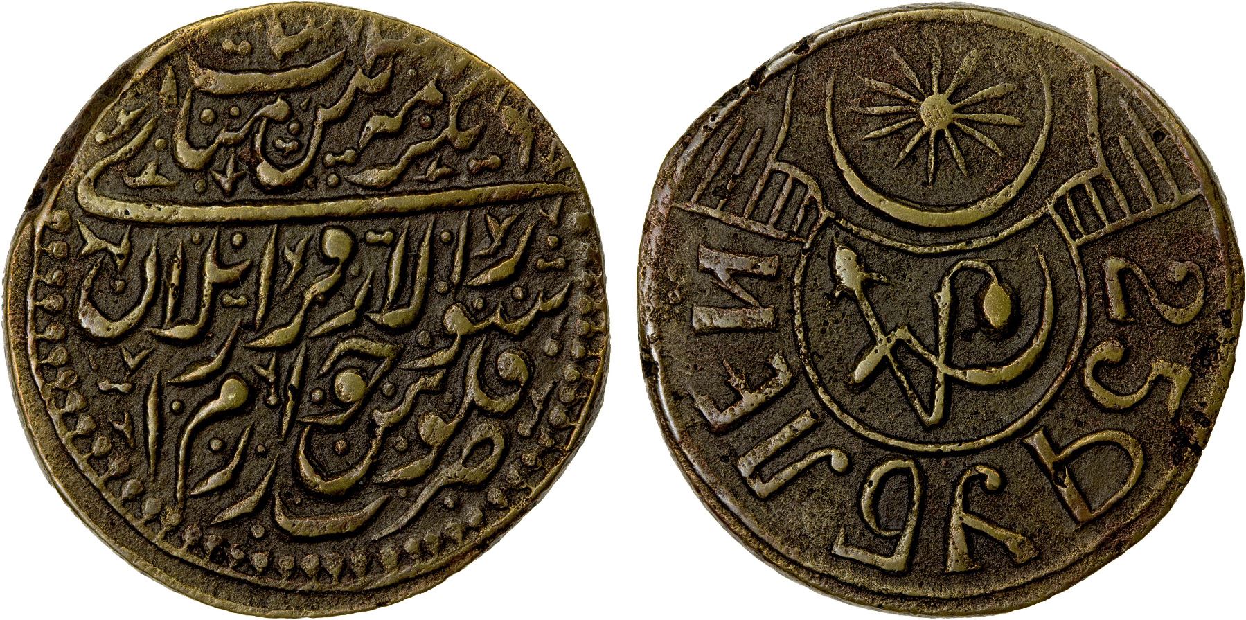 KHWAREZM: AE 25 roubles (8.17g), Khwarizm (Khiva), AH1339, KM-2.1, 12-point star, legends in Russian and Uzbek Turkish, rare type with "P" mistake, superb strike, choice EF