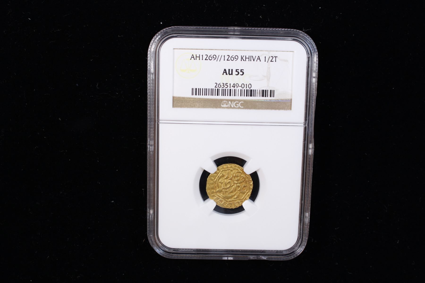 KHWAREZM: Muhammad Amin Khan, 1845-1855, AV 1/2 tilla, Khwarizm, AH1269//1269, A-3082, lovely bold strike, NGC graded AU55, R.