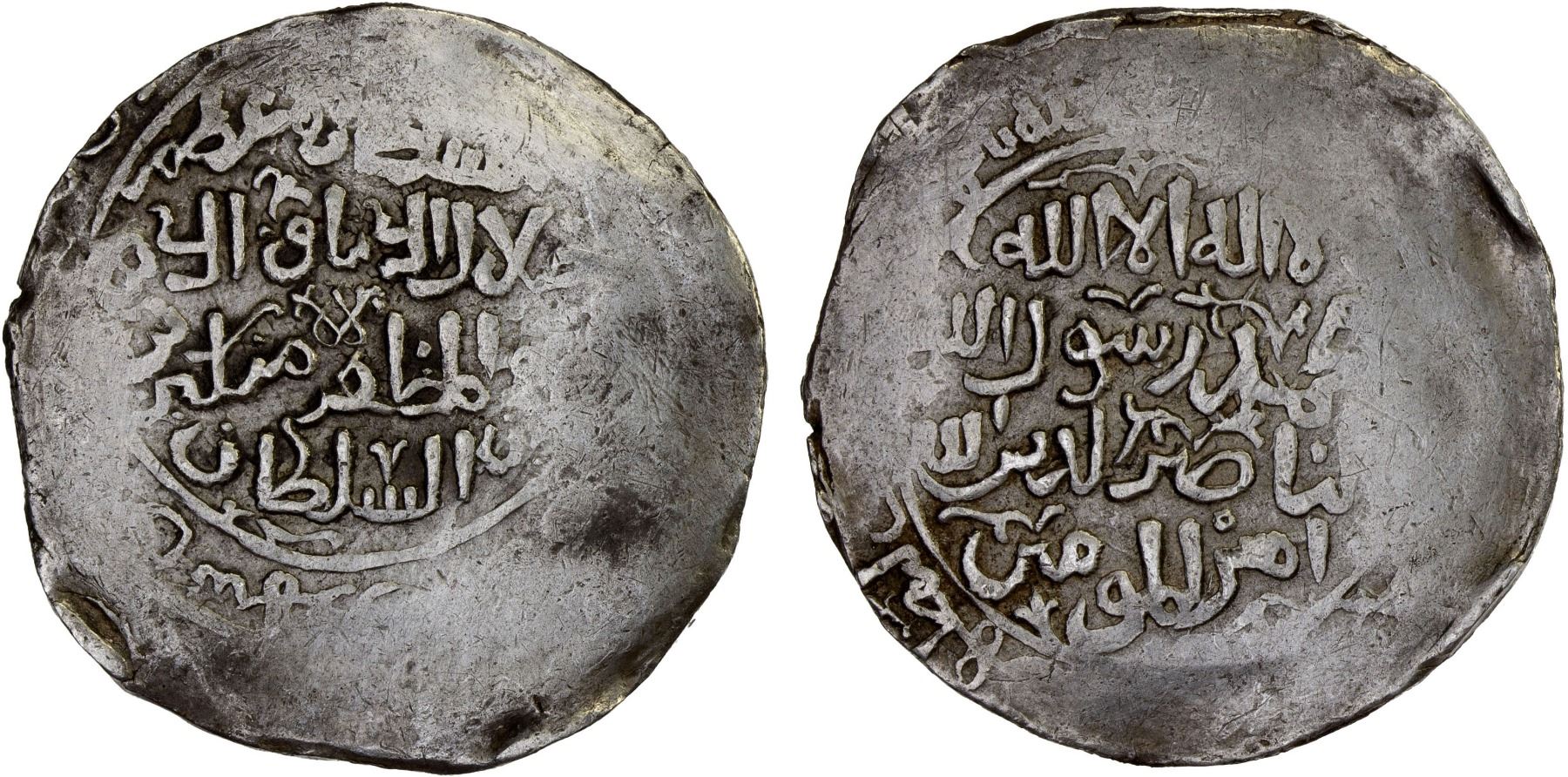 KHWARIZMSHAH: Mangubarni, 1220-1231, AR broad dirham (5.61g) (Ghazna), DM, A-1744, ruler cited as jalal al-dunya wa'l-din abu'l-muzaffar mangubarni bin al-sultan; style of the Ghazna mint; average strike with the usual marginal weakness, VF, RR.