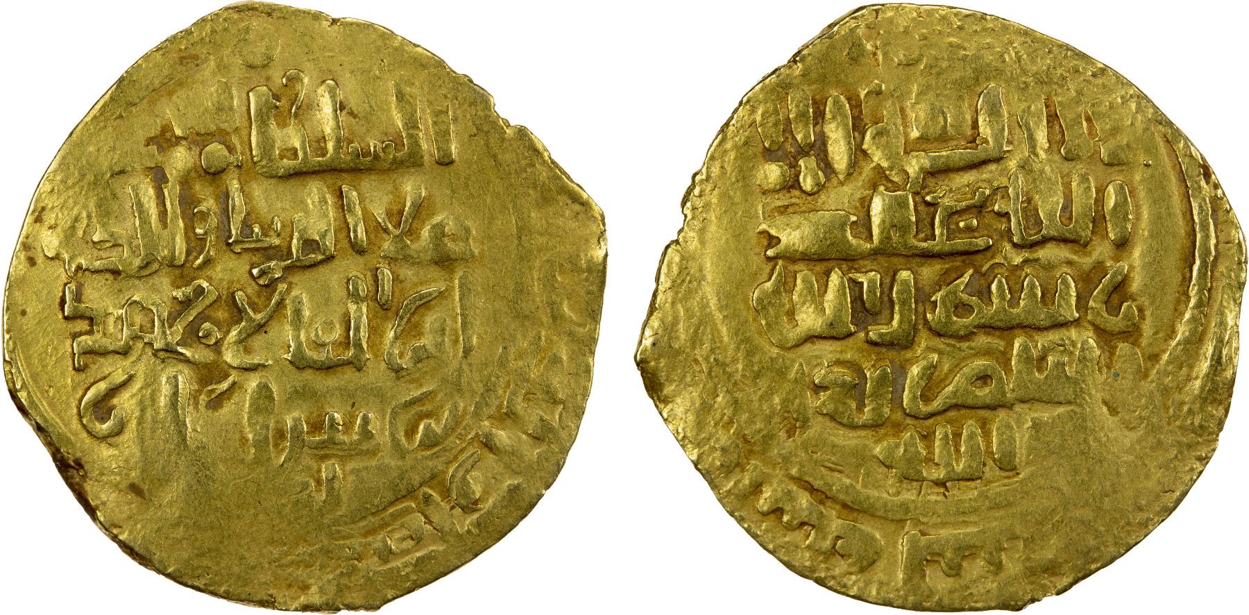 KHWARIZMSHAH: Muhammad, 1200-1220, AV dinar (3.87g), NM/MM, DM, A-1712, average strike, VF.