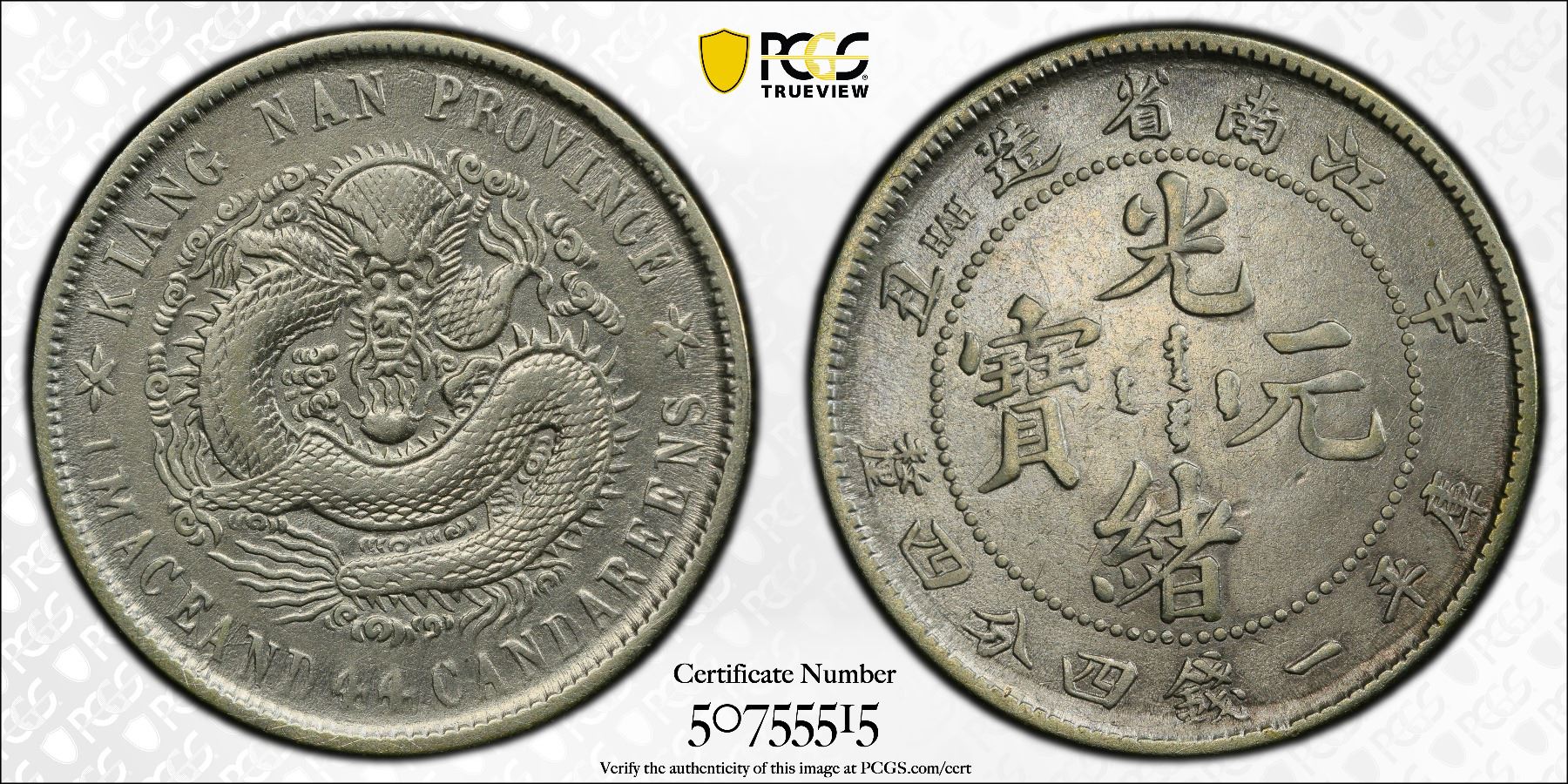 KIANGNAN: Kuang Hsu, 1875-1908, AR 20 cents, CD1901, Y-143a.7, L&M-234A, with "HAH" variety, a well struck lustrous example, cleaned, PCGS graded XF details.