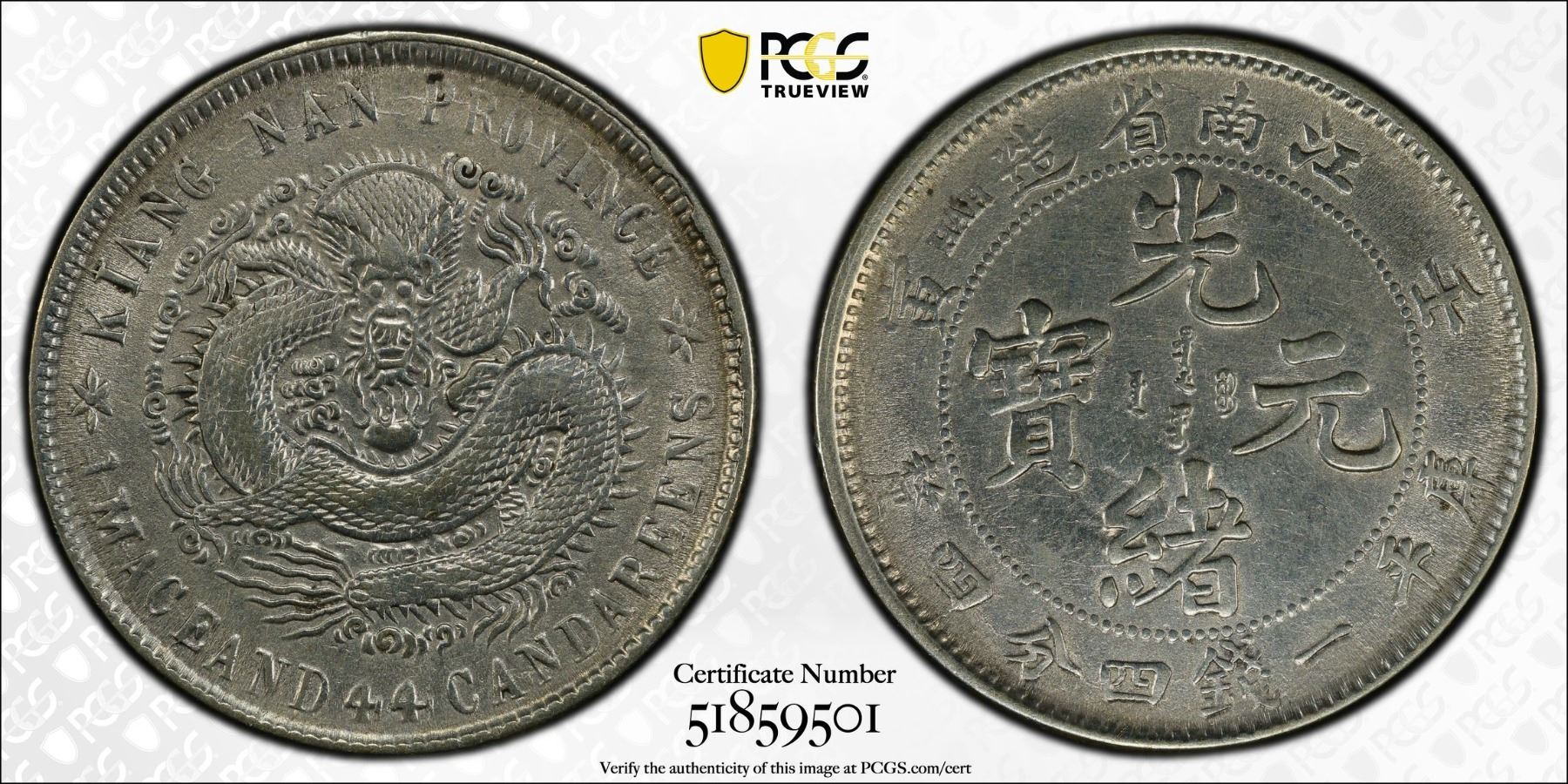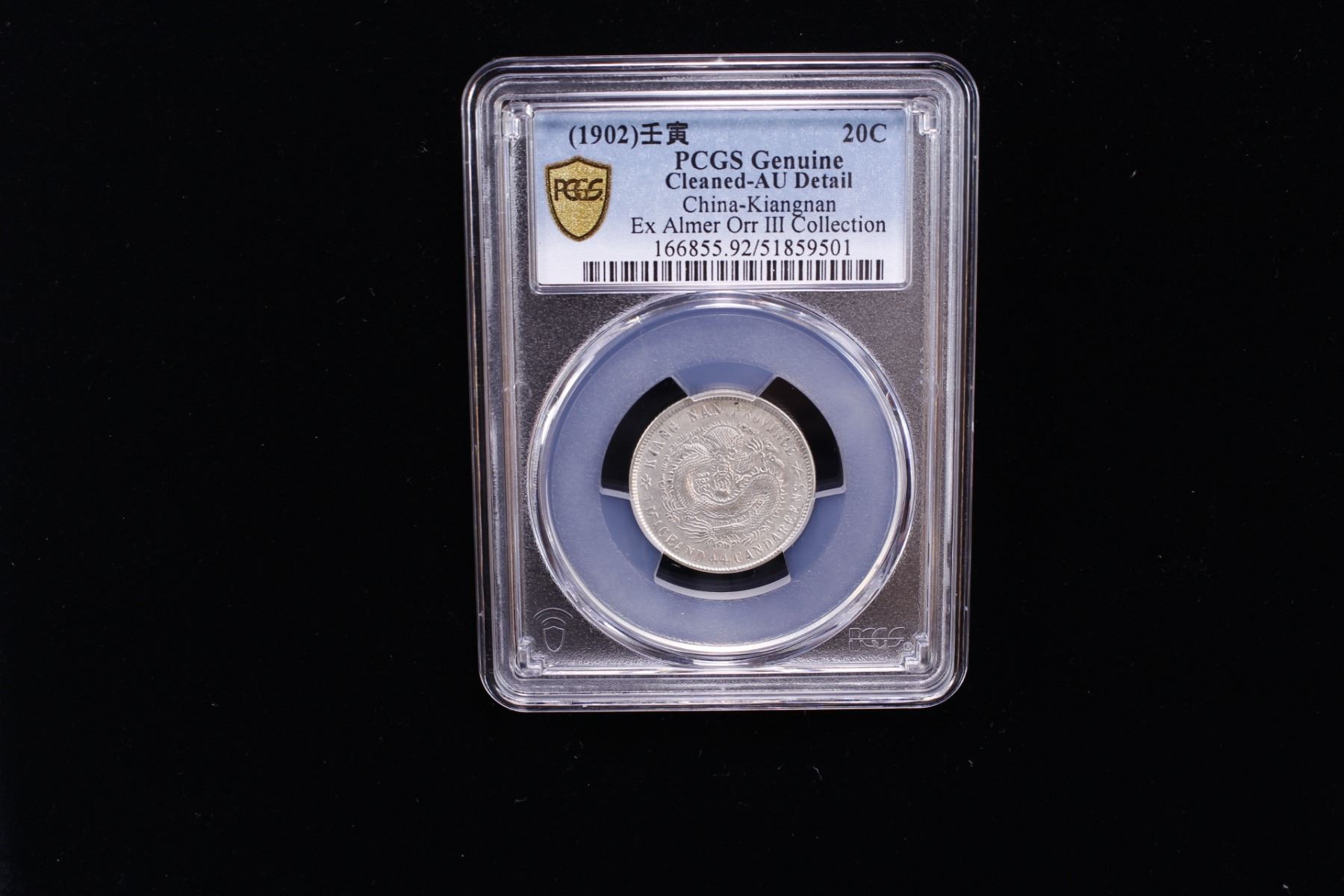 KIANGNAN: Kuang Hsu, 1875-1908, AR 20 cents, CD1902, Y-Y-143a.8, old type dragon with long face, cleaned, PCGS graded AU details, ex Almer H. Orr III Collection.