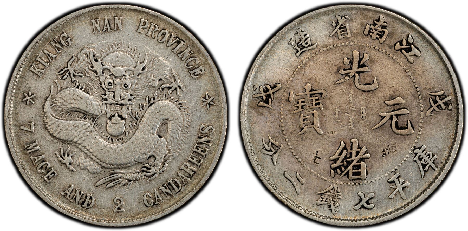 KIANGNAN: Kuang Hsu, 1875-1908, AR dollar, Nanking, CD1898, Y-145a.2, L&M-217, K-71, dragon's eyeballs in relief variety, with several small Chinese merchant chopmarks, PCGS graded XF details, ex Salvatore J. Falcone Collection.