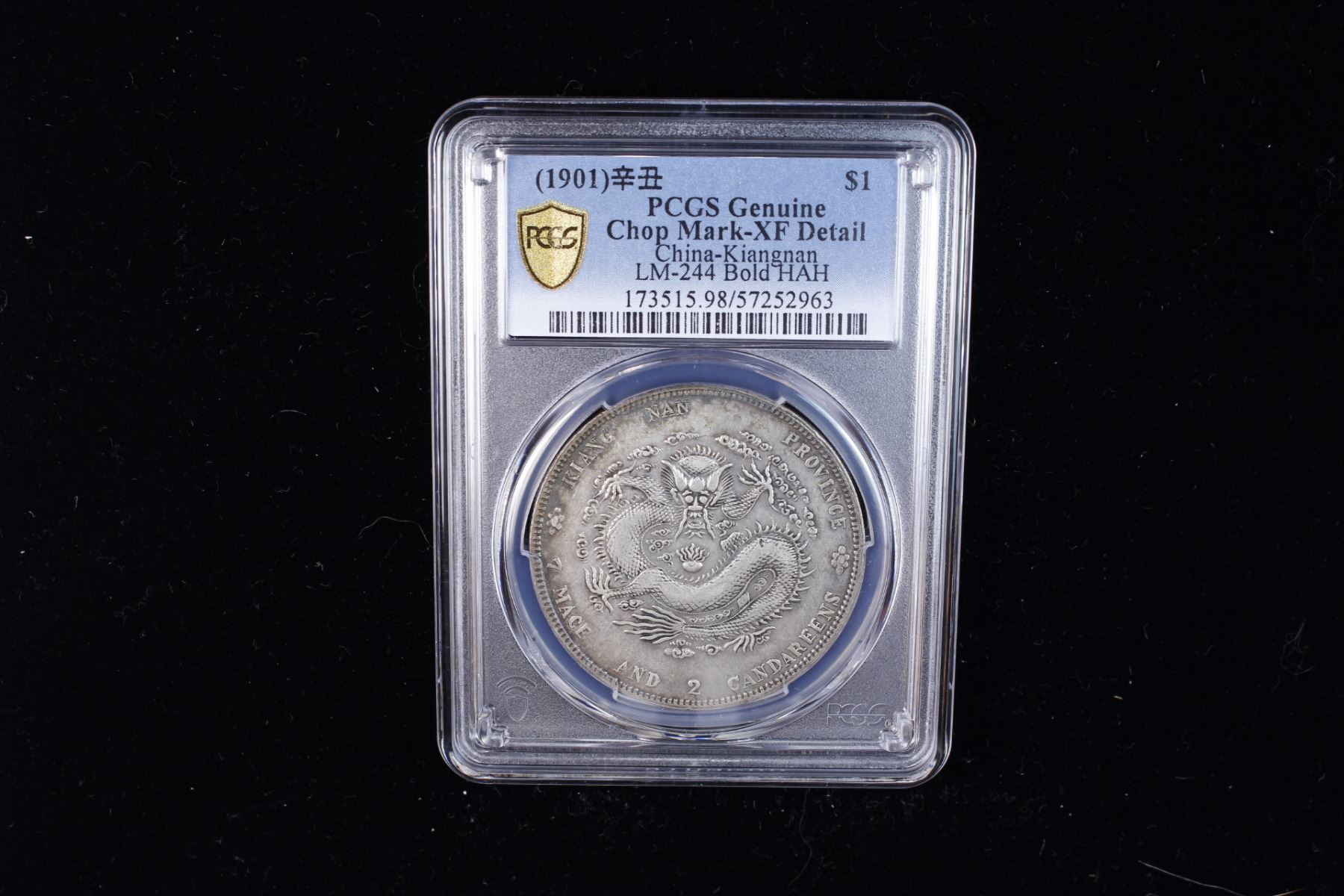 KIANGNAN: Kuang Hsu, 1875-1908, AR dollar, Nanking, CD1901, Y-145a.6, L&M-244, K-90, variety with bold 'HAH', small Chinese merchant chopmarks, PCGS graded XF details, ex Salvatore J. Falcone Collection.