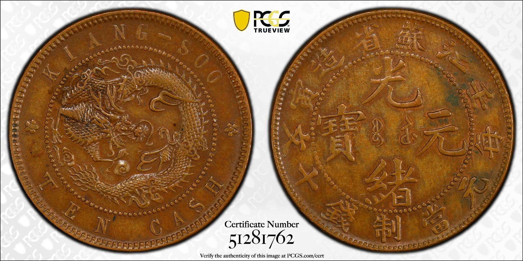 KIANGSU: Kuang Hsu, 1875-1908, AE 10 cash, CD1902, PCGS AU55