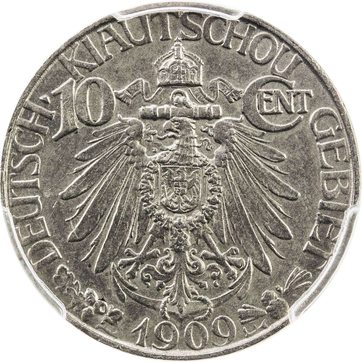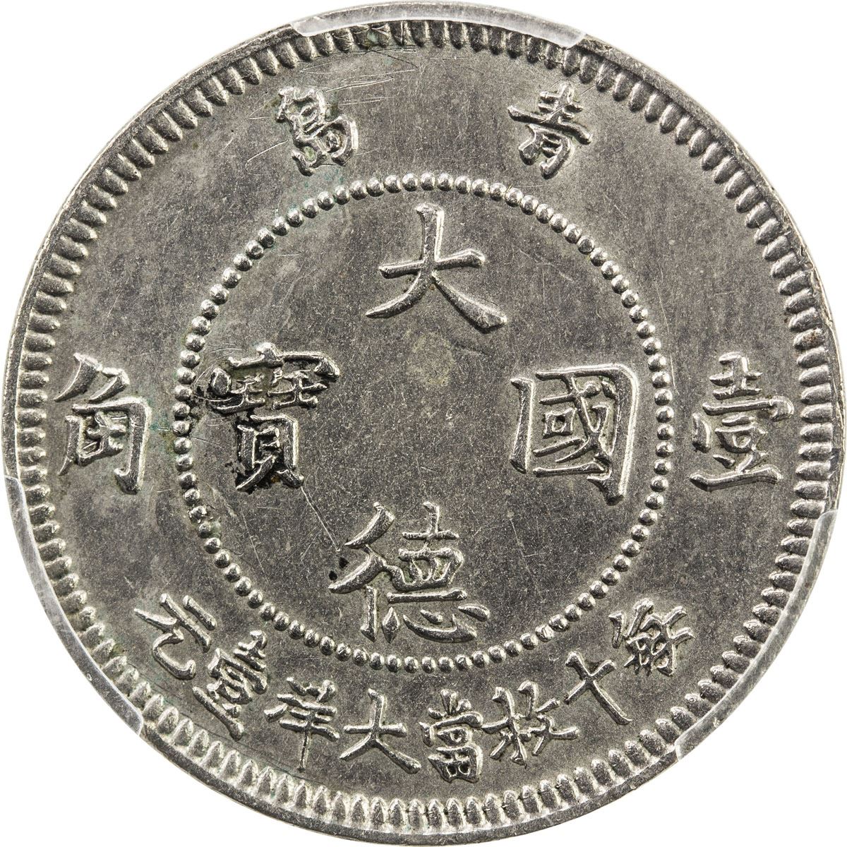 KIAUCHAU: Wilhelm II, 1898-1914, 10 cents, 1909, KM-2, Deutsche Kiautschou Gebiet // Chinese inscription dà dé guó bao at center, qing dao above, tooled, but hardly noticeable, PCGS graded About Unc Details. The Kiautschou Bay concession was a territory leased by the Germans in Imperial and Early Republican China, lasting from 1898 to 1914. The administrative center of the territory was located at Tsingtau. A brewery was established in 1903 by German settlers (Tsingtao Brewery Co.), and still exists today as China's most famous brewery.