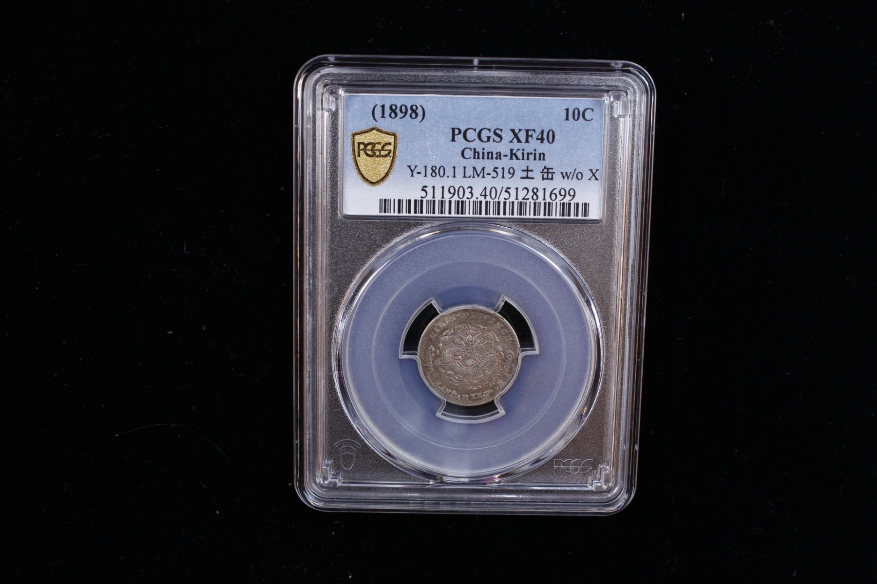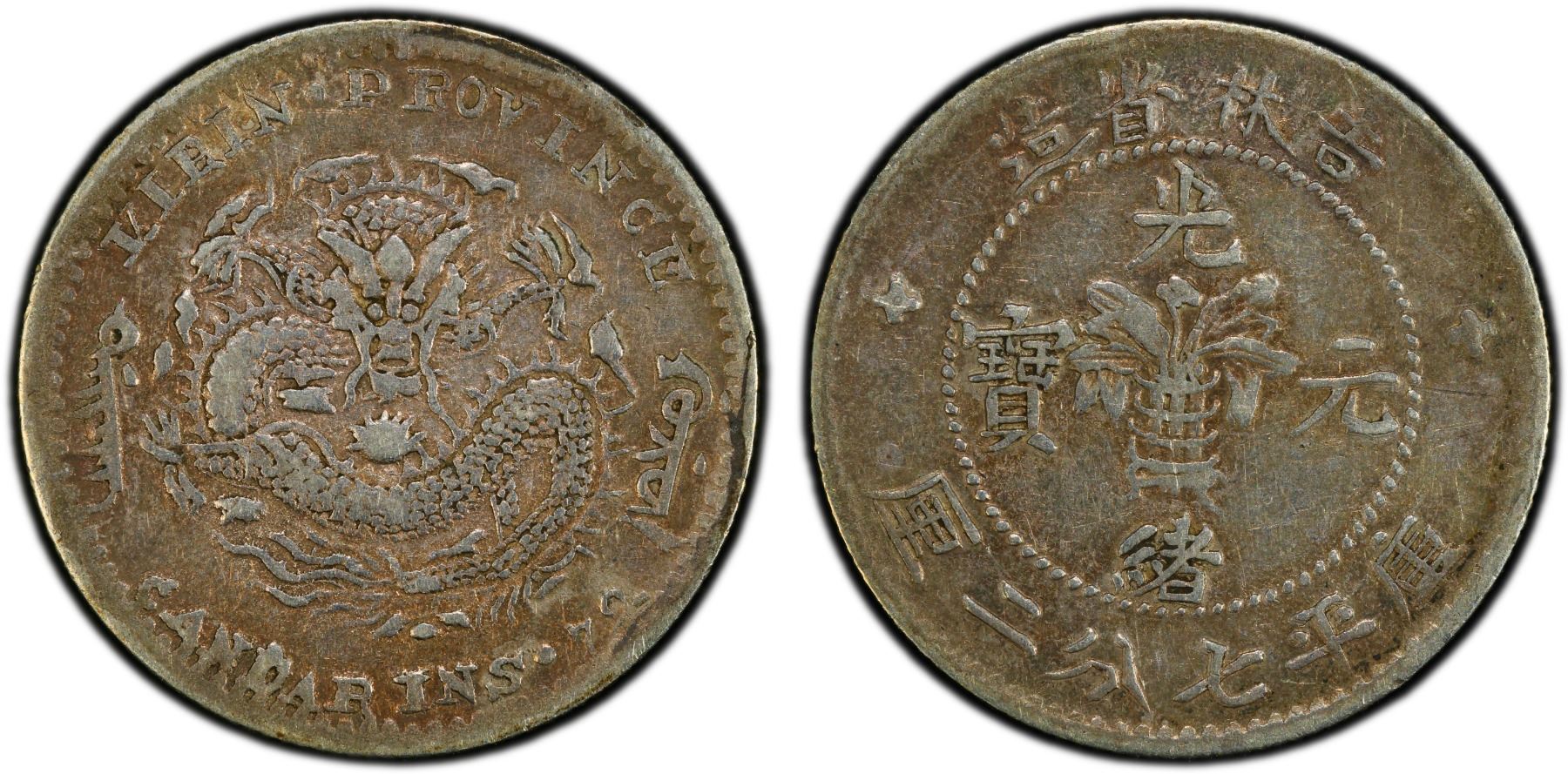 KIRIN: Kuang Hsu, 1875-1908, AR 10 cents, ND (1898), Y-180, L&M-519, scarce tu fou variety, PCGS graded EF40. There are only 11 examples of this rare variety graded at PCGS as of June 2025. Those 11 examples account for only about 1% of the L&M-519 pieces they have graded in total.