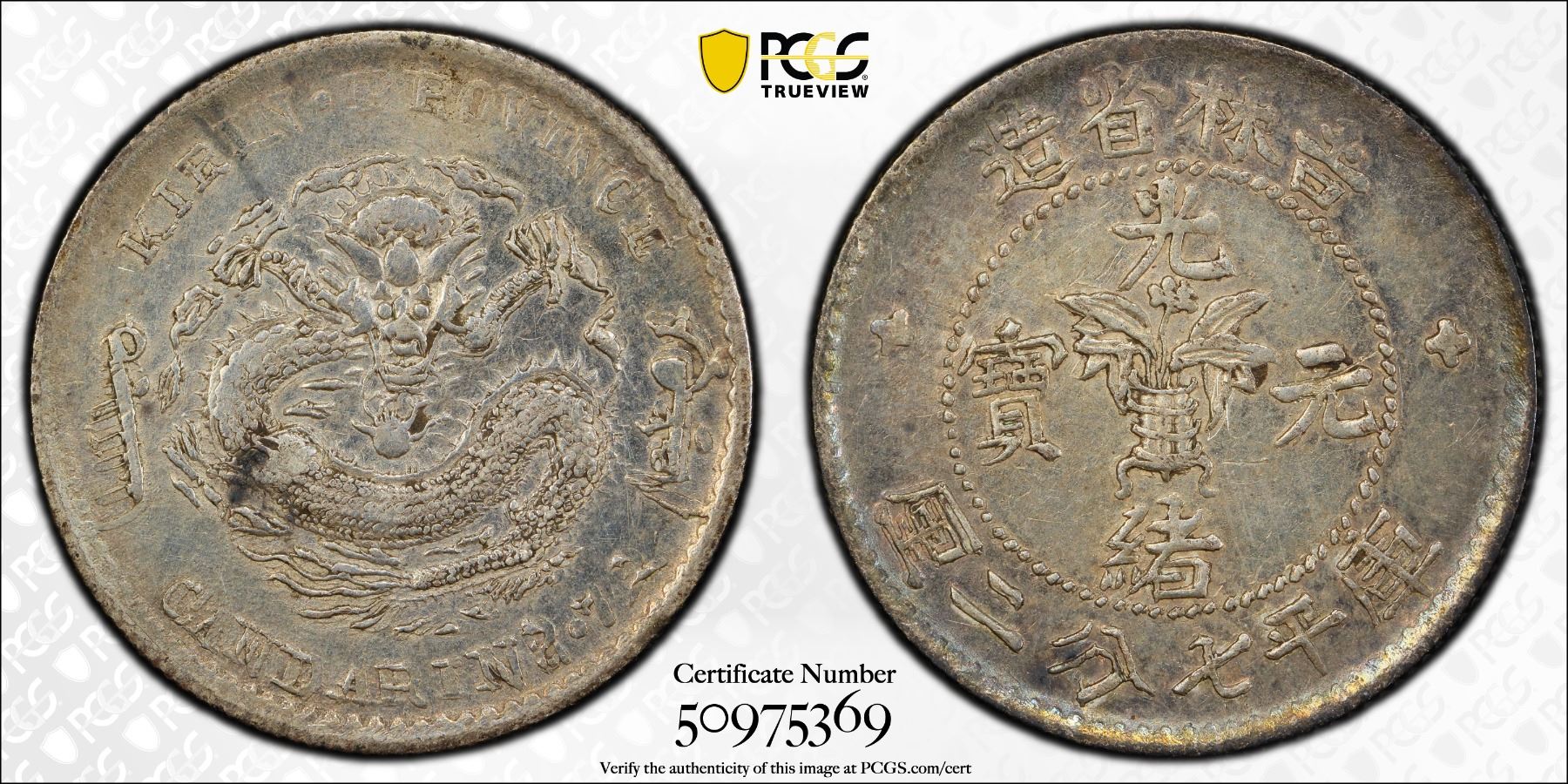 KIRIN: Kuang Hsu, 1875-1908, AR 10 cents, ND (1898), Y-180.1, L&M-524, small vase variety, cleaned, PCGS graded XF details, ex Eduard Kann Collection Sale 18-20 June 1971, Lot 460 (part).