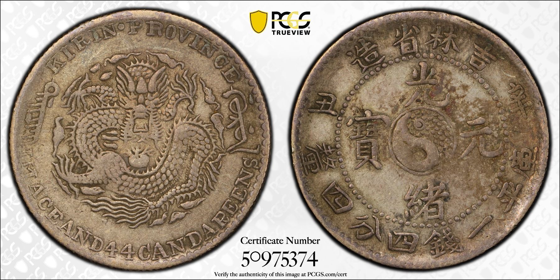 KIRIN: Kuang Hsu, 1875-1908, AR 20 cents, CD1901, Y-181, L&M-539, cleaned, PCGS graded XF details.