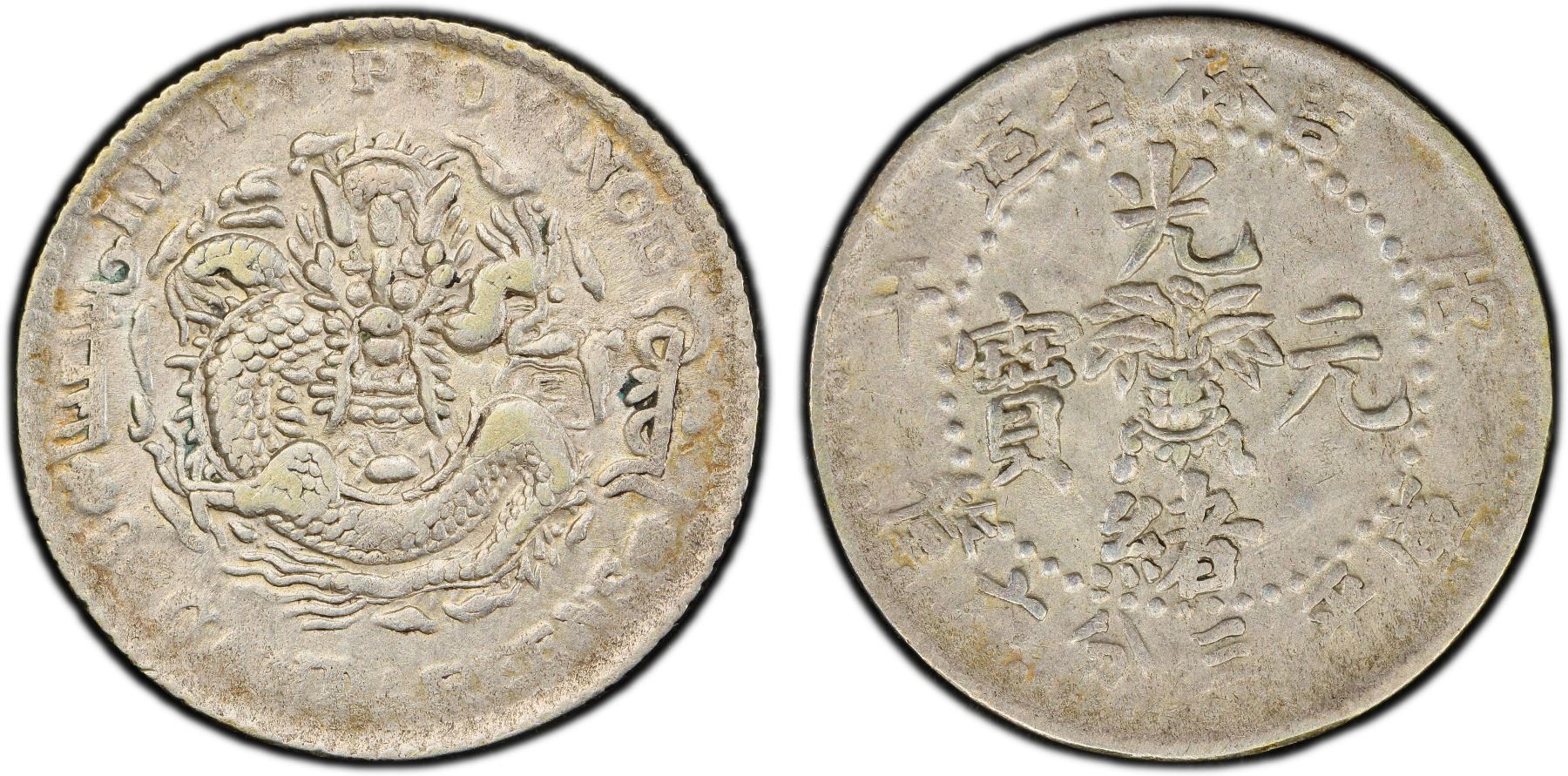 KIRIN: Kuang Hsu, 1875-1908, AR 5 cents, CD1906, Y-179.1, L&M-566, weak strike as is standard for this type, PCGS graded AU50.