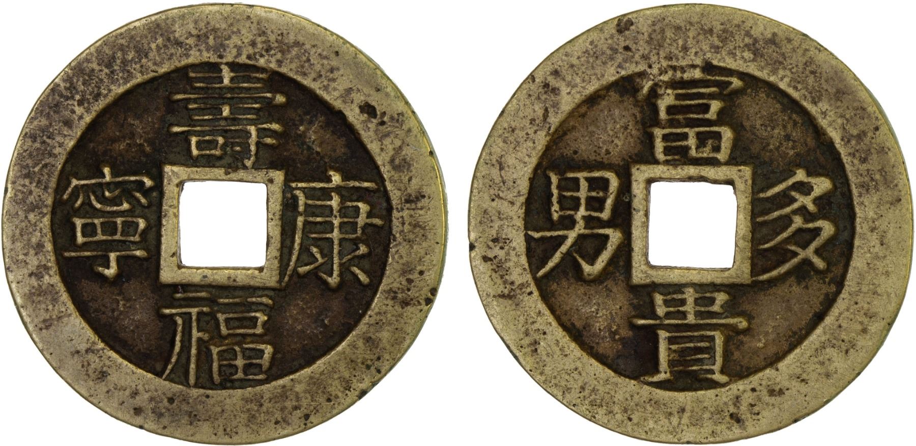 KOREA: AE charm (7.53g), L&S-121, 29mm, su bok gang nyeong ("longevity, blessing, well-being, peace") // bu gwi da nam ("wealth, prominence, and many sons"), adjustment marks on edge, VF-XF.