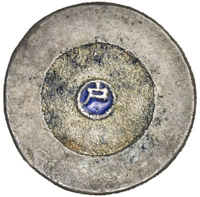 KOREA: Hyong, 1864-1897, AR 2 chon (6.92g), ND (1882-1883), KM-1082, blue cloisonné, EF.