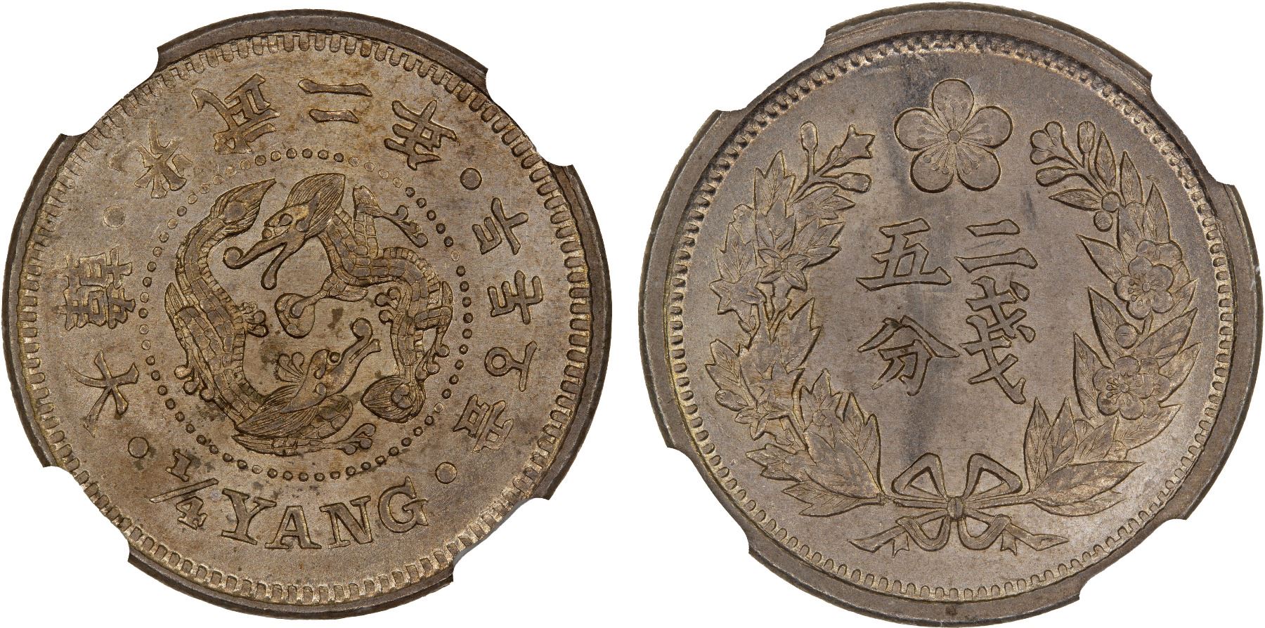 KOREA: Kwang Mu, 1897-1907, 1/4 yang, year 2 (1898), KM-1117, great luster and eye appeal, two-year type, NGC graded MS64.