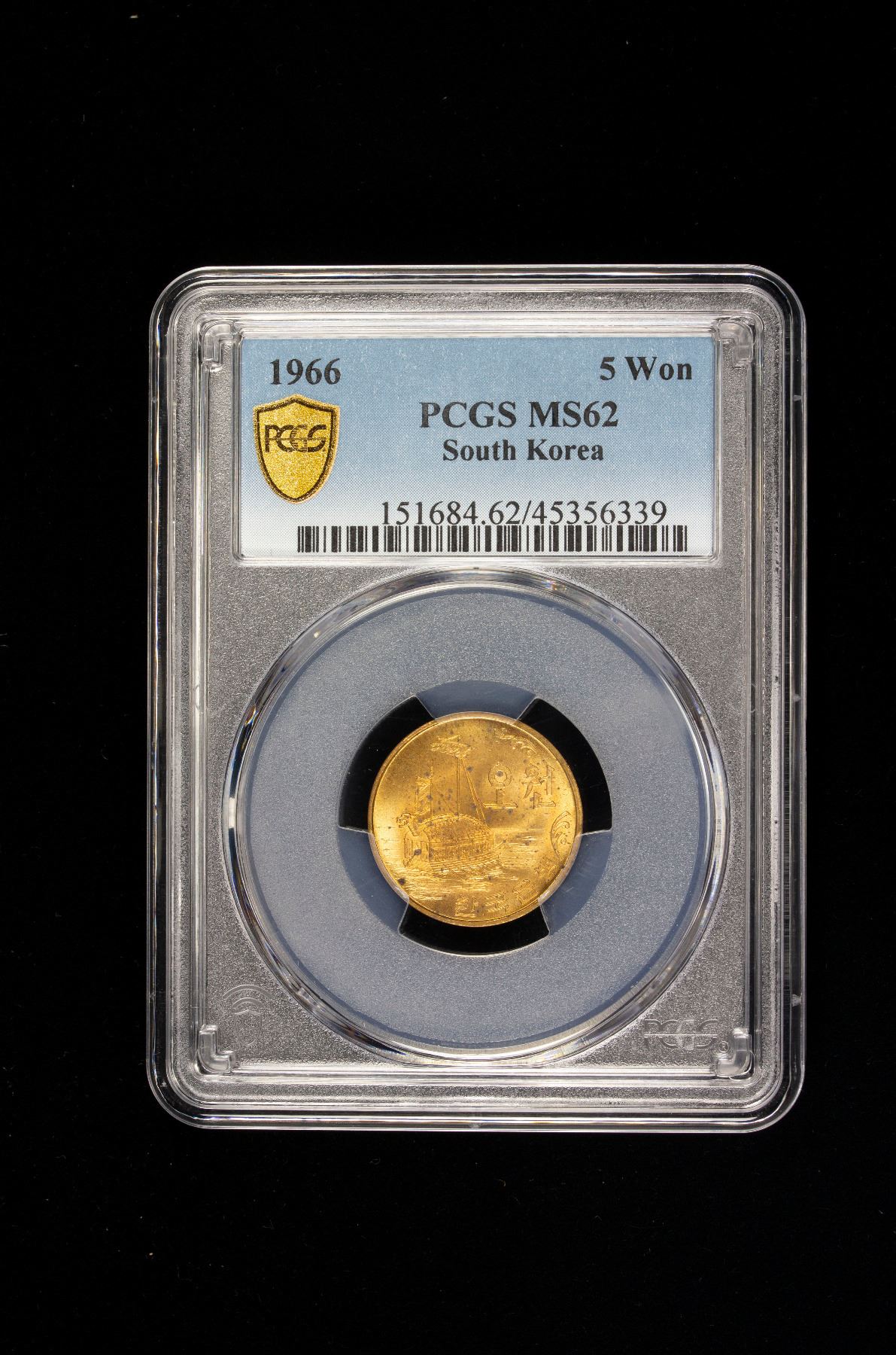 KOREA (SOUTH): Republic, AE 5 won, 1966, KM-5, an attractive mint state example, PCGS graded MS62.