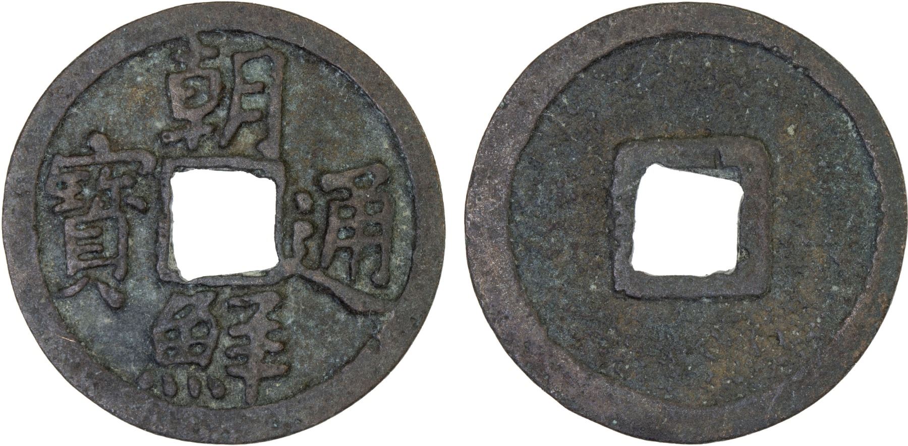 KOREA: Sejong, 1418-1450, AE mun (4.26g), H-10.3, cho son tong bo, orthodox script, cast from 1423-25, a lovely quality example! VF. Bronze coins were cast starting in 1423 during the reign of king Sejong the Great with the Joseon Tongbo legends. The Sejong era Joseon Tongbo cash coins were only issued in the years 1423 (Sejong 5), 1424 (Sejong 6), and 1425 (Sejong 7). The coins produced under Sejong were pegged to silver at 150 coins to one kun which is equal to 600 grams, though the actual market rates regularly fluctuated. But the monetary system proved to be unpopular as people resorted back to barter after a few years.