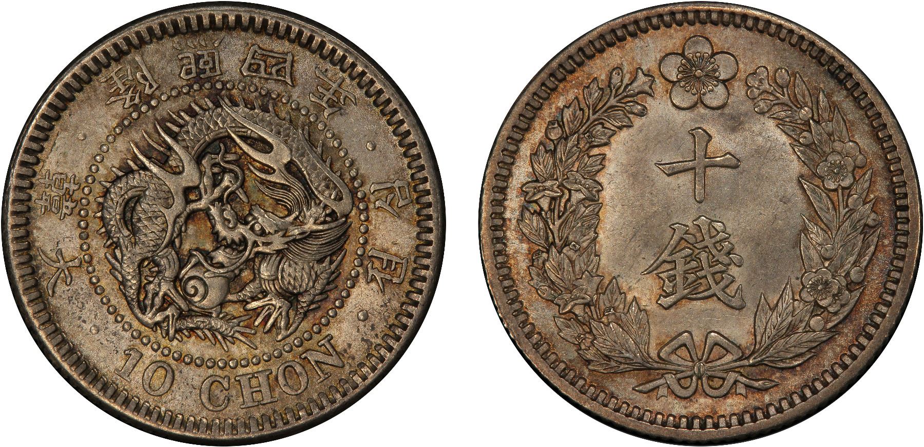 KOREA: Yung Hi, 1907-1910, AR 10 chon, year 4 (1910), KM-1139, attractive luster with light rose toning, a lovely mint-state example from the final year of issue, PCGS graded MS63.