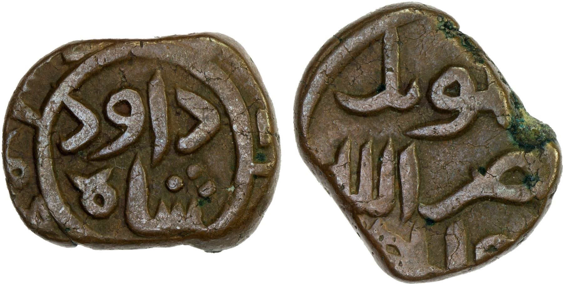 KULBARGA (BAHMANIDS): Da'ud Shah, 1397, AE falus (5.38g), ND, G-BH58, with his title al-mu'ayyad bi-nasr Allah, VF, R.