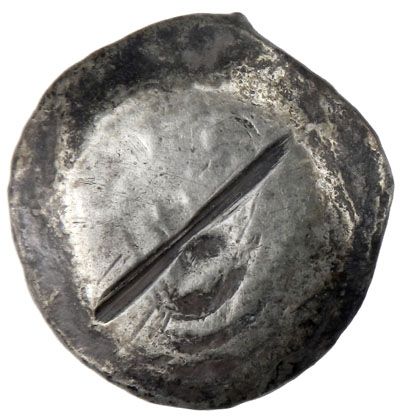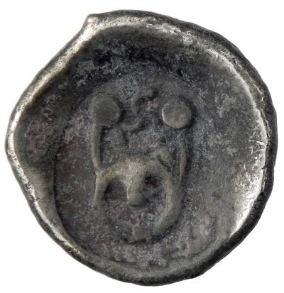 KUNTALA: Punchmarked, ca. 600-550 BC, AR shatamana (6.65g), Ra-502 ff, pulley, small triskeles above, About Very Fine, ex. John Page Collection.