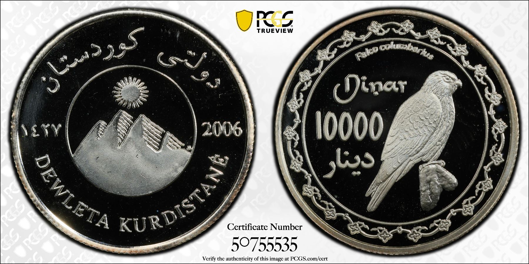KURDISTAN: Republic, AR 10,000 dinars, 2006/AH1427, PCGS Proof 68 DCAM