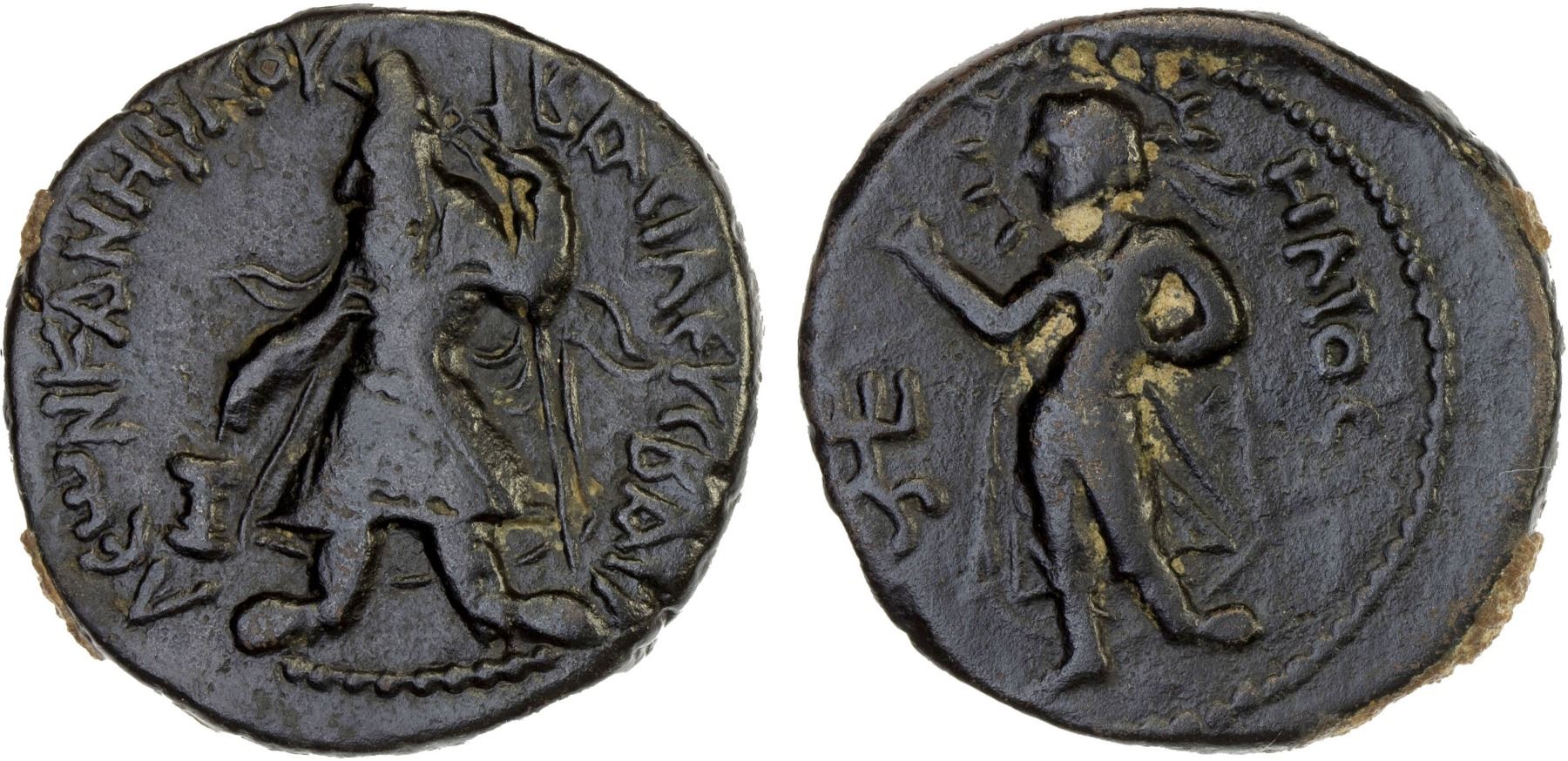 KUSHAN: Kanishka I, 127-151, AE didrachm (8.24g), VF