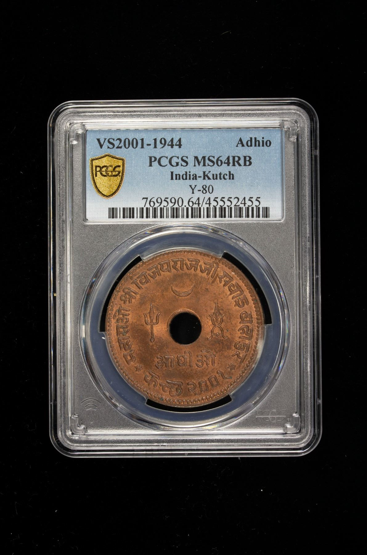 KUTCH: Vijayarajji, 1942-1948, AE adhio, Bhuj, 1944/2001, PCGS MS64 RB
