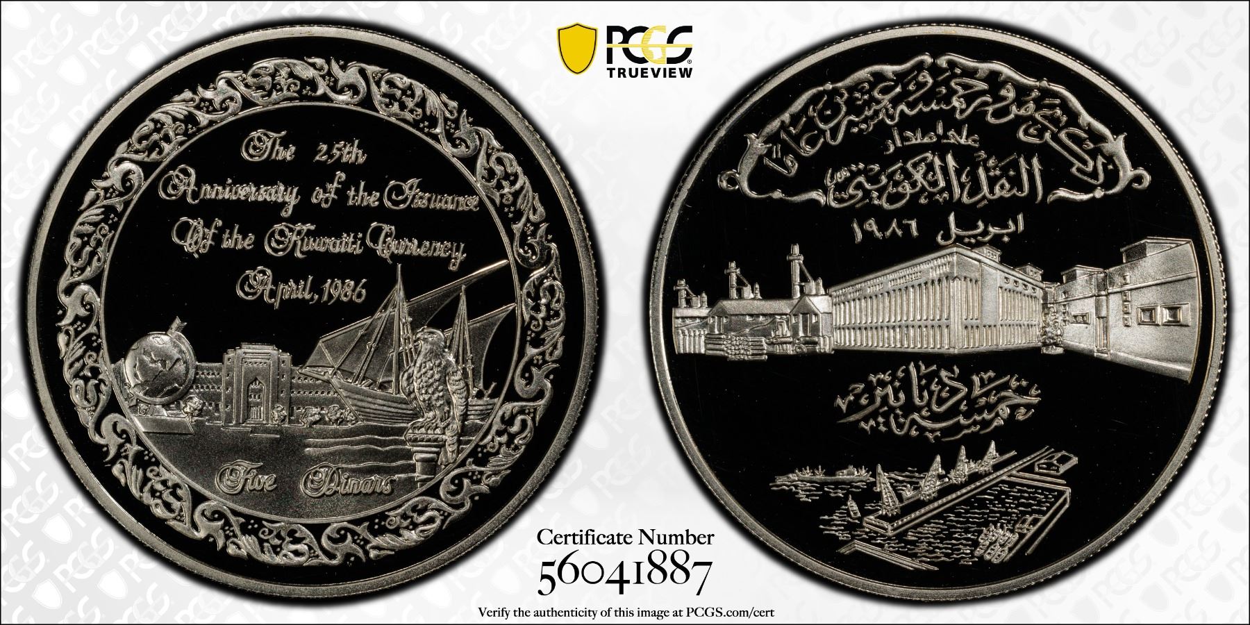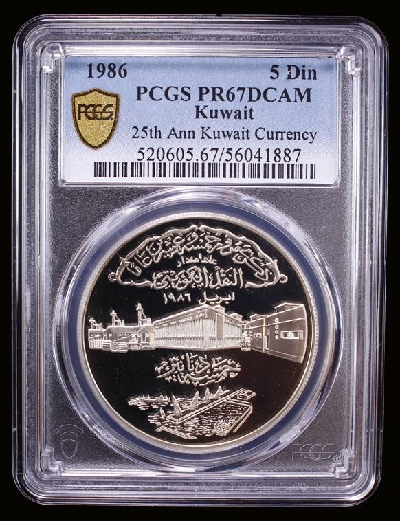 KUWAIT: Jaber III al-Ahmad al-Sabah, 1977-2006, 1986, KM-20, 25th Anniversary of the Issuance of the Kuwaiti Currency, an incredible example, PCGS graded PF67 Deep Cameo.