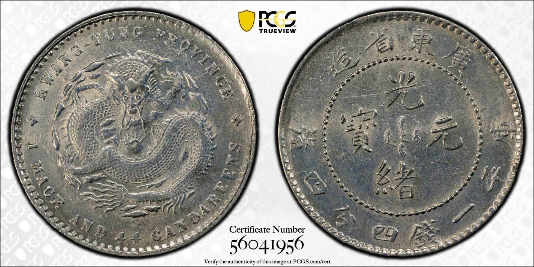 KWANGTUNG: Kuang Hsu, 1875-1908, AR 20 cents, ND (1890-1905), PCGS AU details