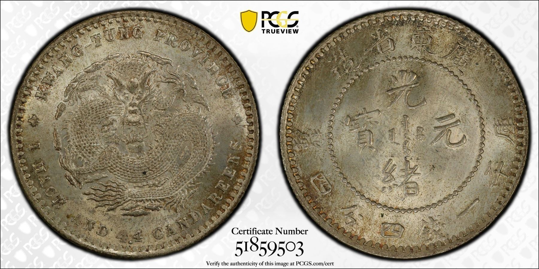 KWANGTUNG: Kuang Hsu, 1875-1908, AR 20 cents, ND (1890-1908), Y-201, L&M-135, a wonderful example, PCGS graded MS64, ex Almer H. Orr III Collection.