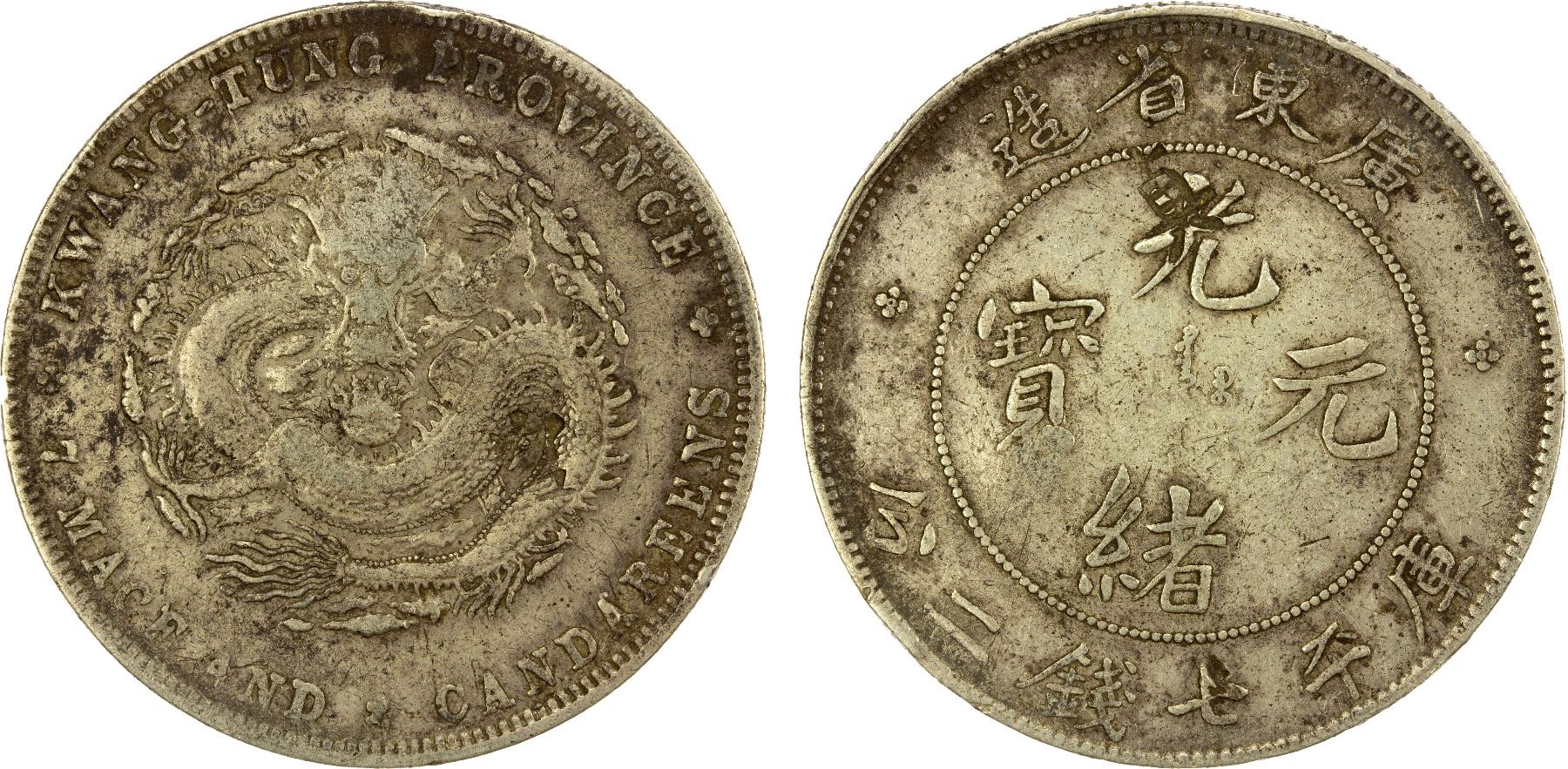KWANGTUNG: Kuang Hsu, 1875-1908, AR dollar, ND (1890-1908), Choice VF