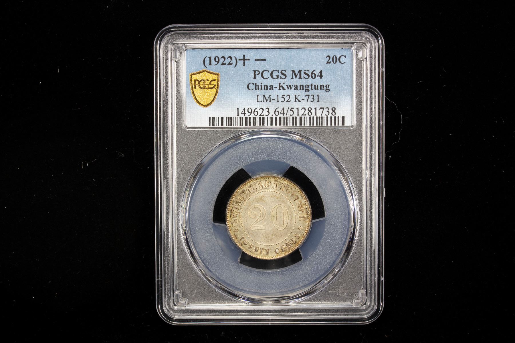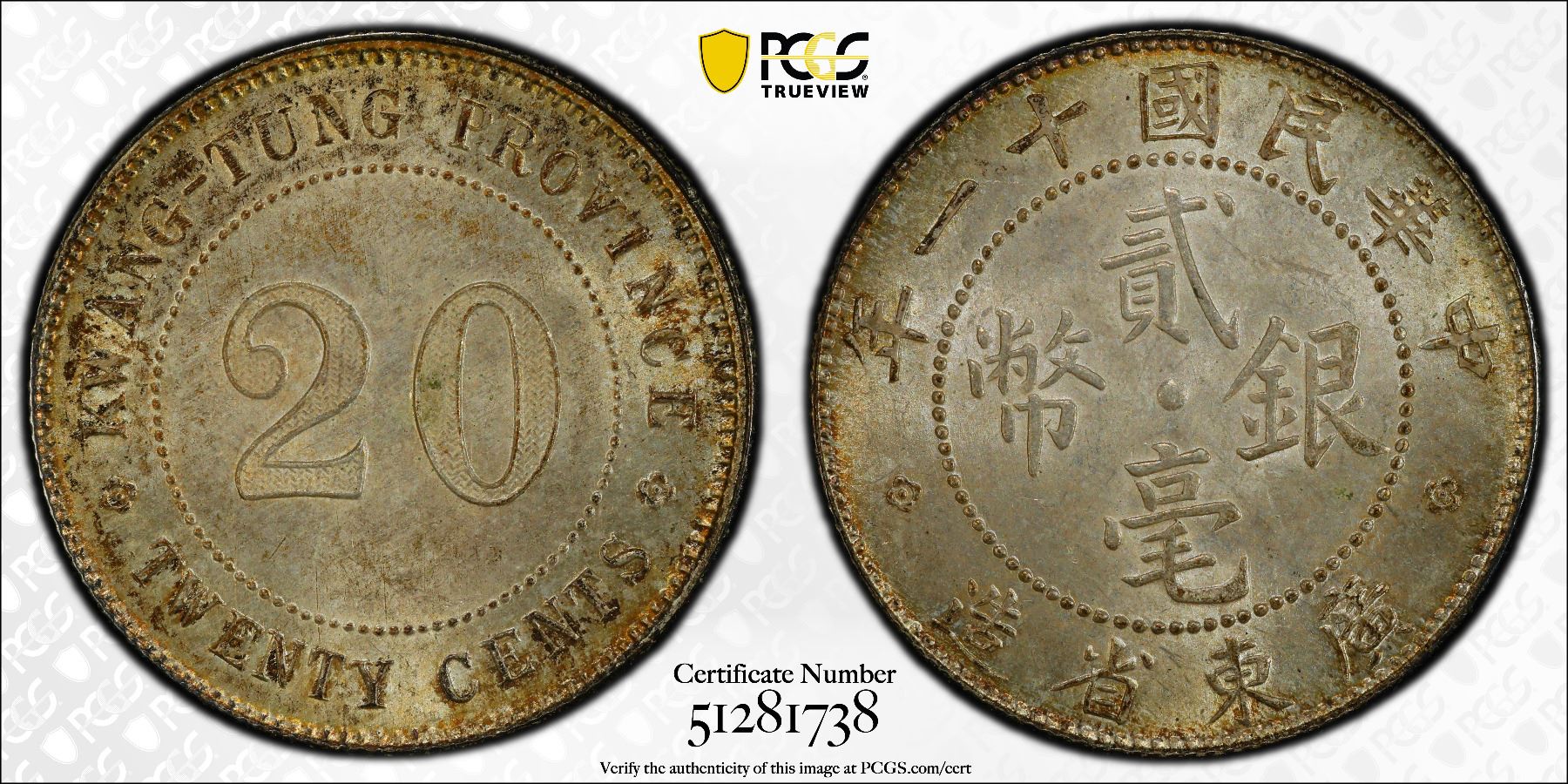KWANGTUNG: Republic, AR 20 cents, year 11 (1922), Y-423, L&M-152, K-731, a wonderful lustrous example! PCGS graded MS64.