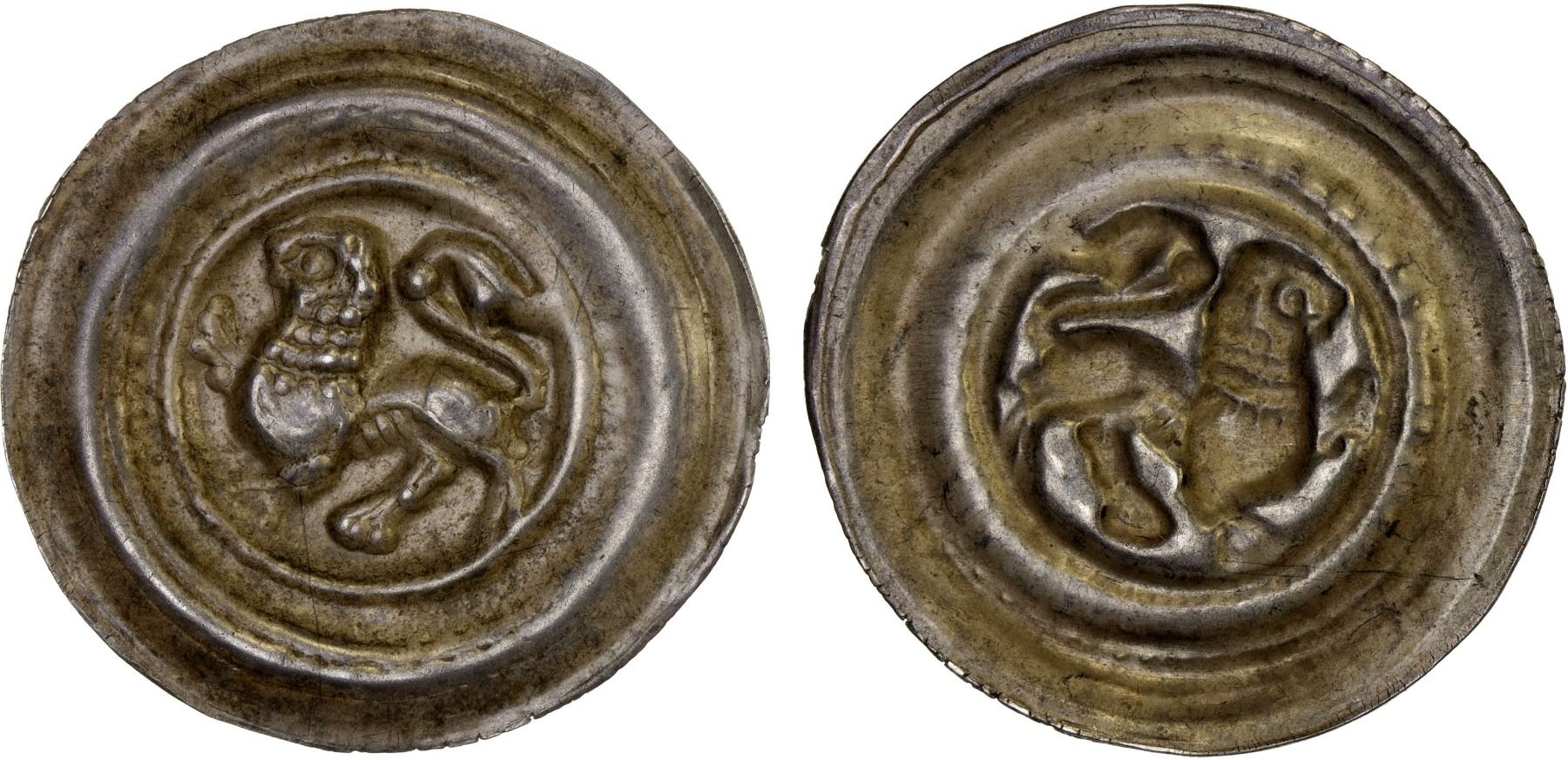 LÜNEBURG: Henry the Lion, as Duke of Saxony, 1142-1180, AR bracteate (0.57g), Berger-361, Bonhoff-76, lion standing left with right forepaw raised, light toning, Choice VF.