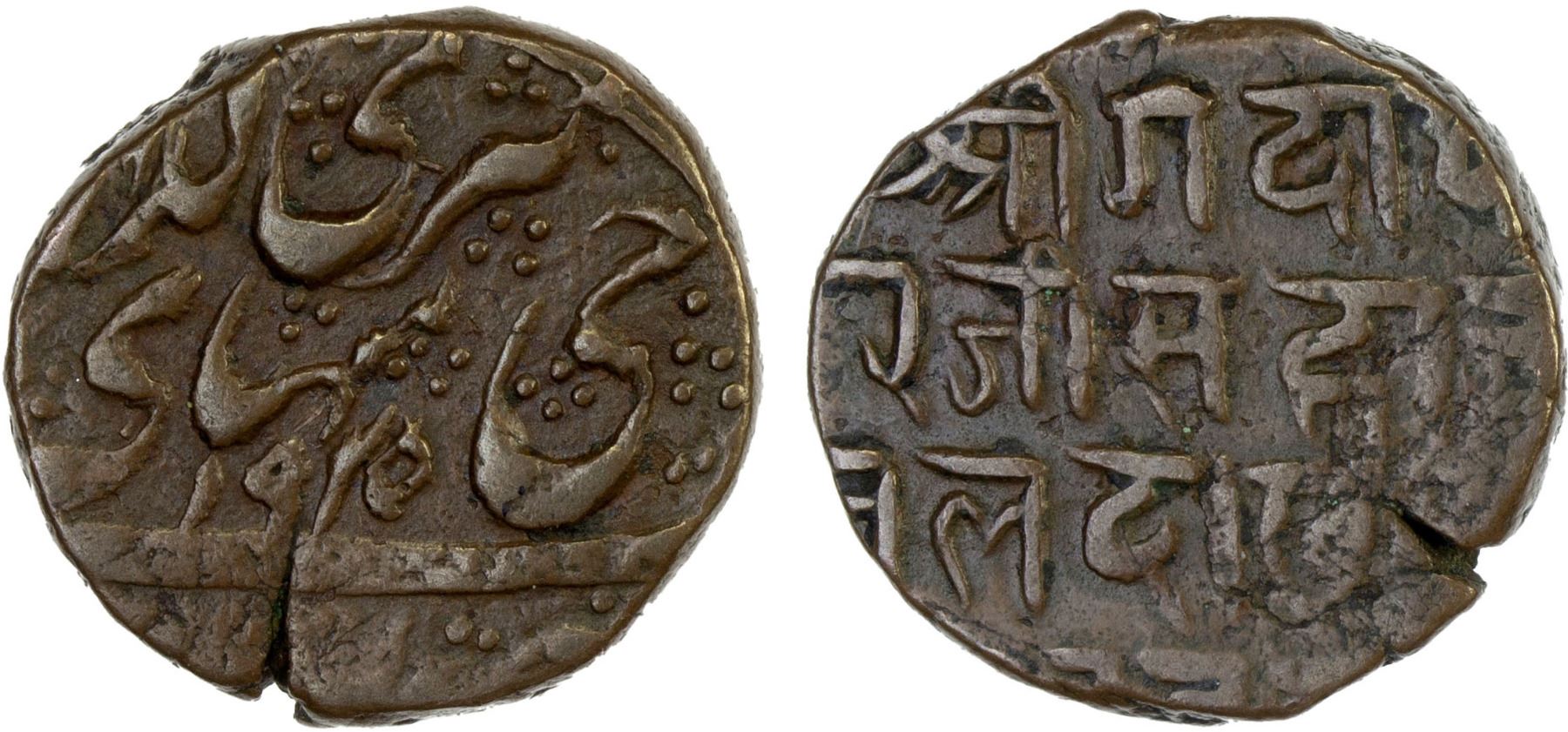 LADAKH: AE paisa (6.07g), VS1925 (1868), KM-9, bilingual issue, struck during the occupation by the Dogras of Jammu, accompanied by collector's information card, Choice VF, ex Anton Holt Collection.