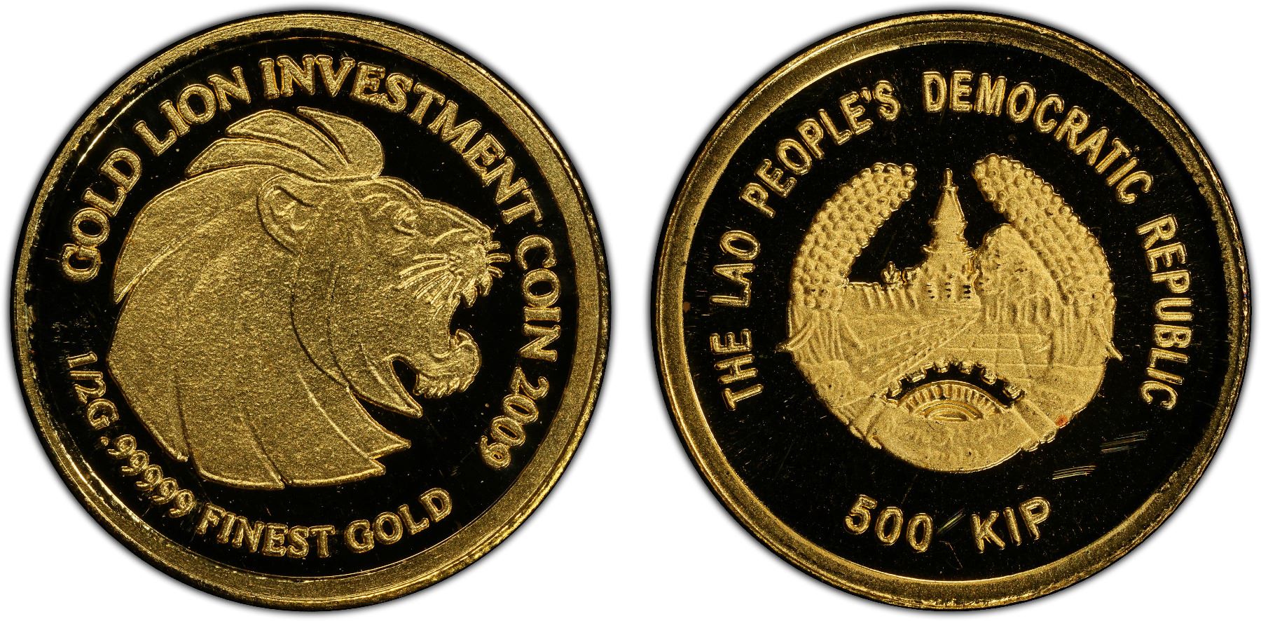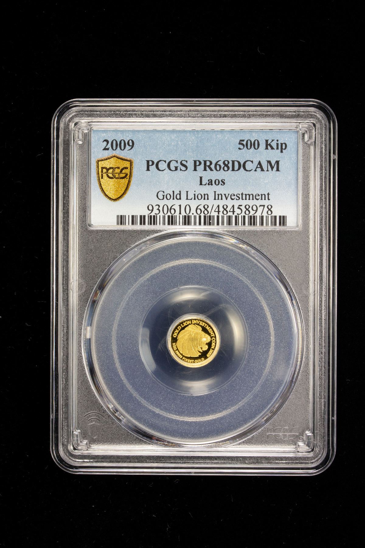LAOS: People's Democratic Republic, AV 500 kip, 2009, KM-151, Singapore Gold Lion Investment Coins, struck in 99999 finest gold, PCGS graded PF68 Deep Cameo, ex Howard A. Daniel III Collection.