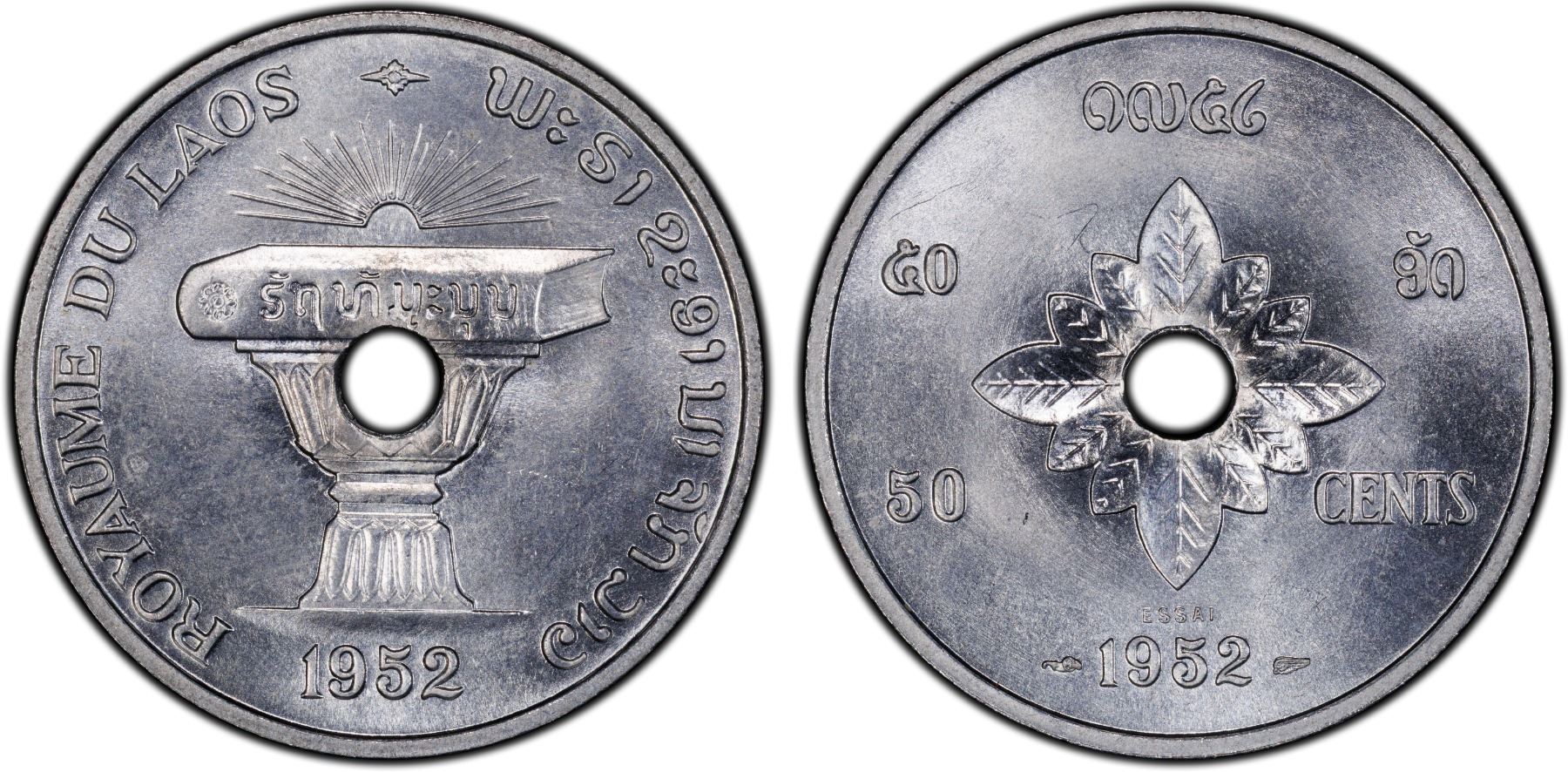 LAOS: Sisavang Vong, 1904-1959, 50 centimes, 1952, KM-E3, Lec-8, Essai, a lovely specimen quality example! PCGS graded Specimen 63.