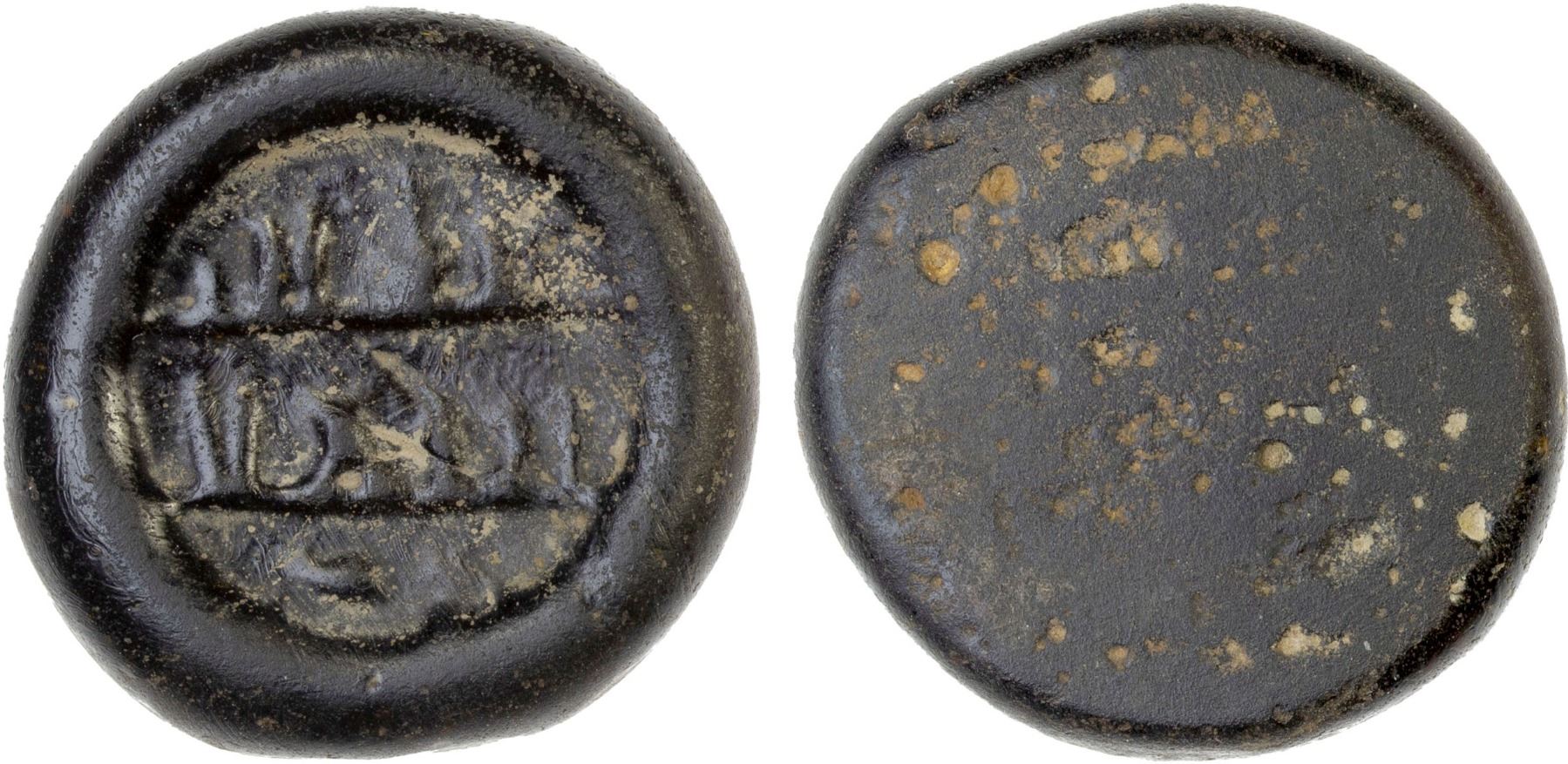 LATE FATIMID: Contemporary imitation, 11th/12th century, glass weight (jeton) (5.89g), A-746G, 3-line blundered Arabic inscription, possibly based on the Imam al-Mustansir's legends, dark brown, almost opaque but still a touch of translucence, bold VF, ex Ismail al-Imam Collection.