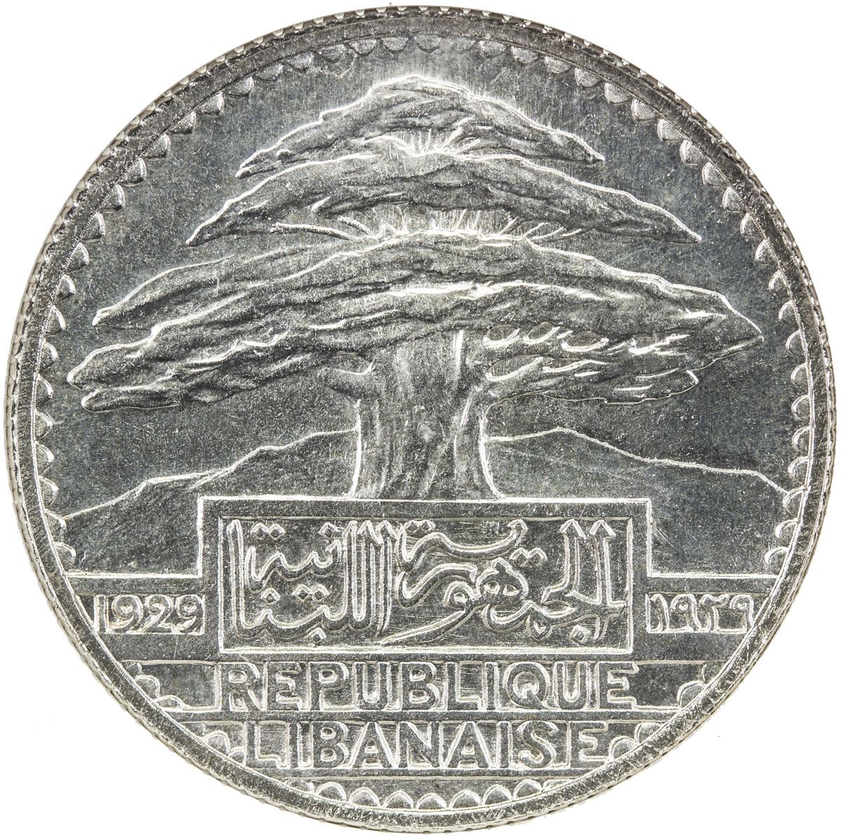 LEBANON: AR 50 piastres, 1929, KM-E8, Lec-39, ESSAI of type KM-8, NGC graded MS66. An example of this ESSAI sold at the Stephen Album Auction 24, Lot 2131, for $1300, though graded only MS64 by NGC.