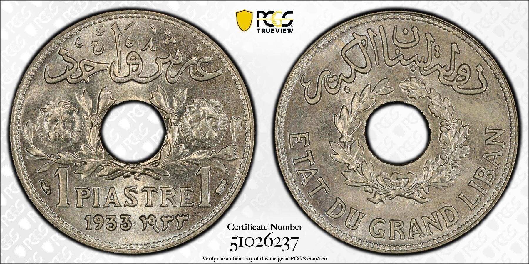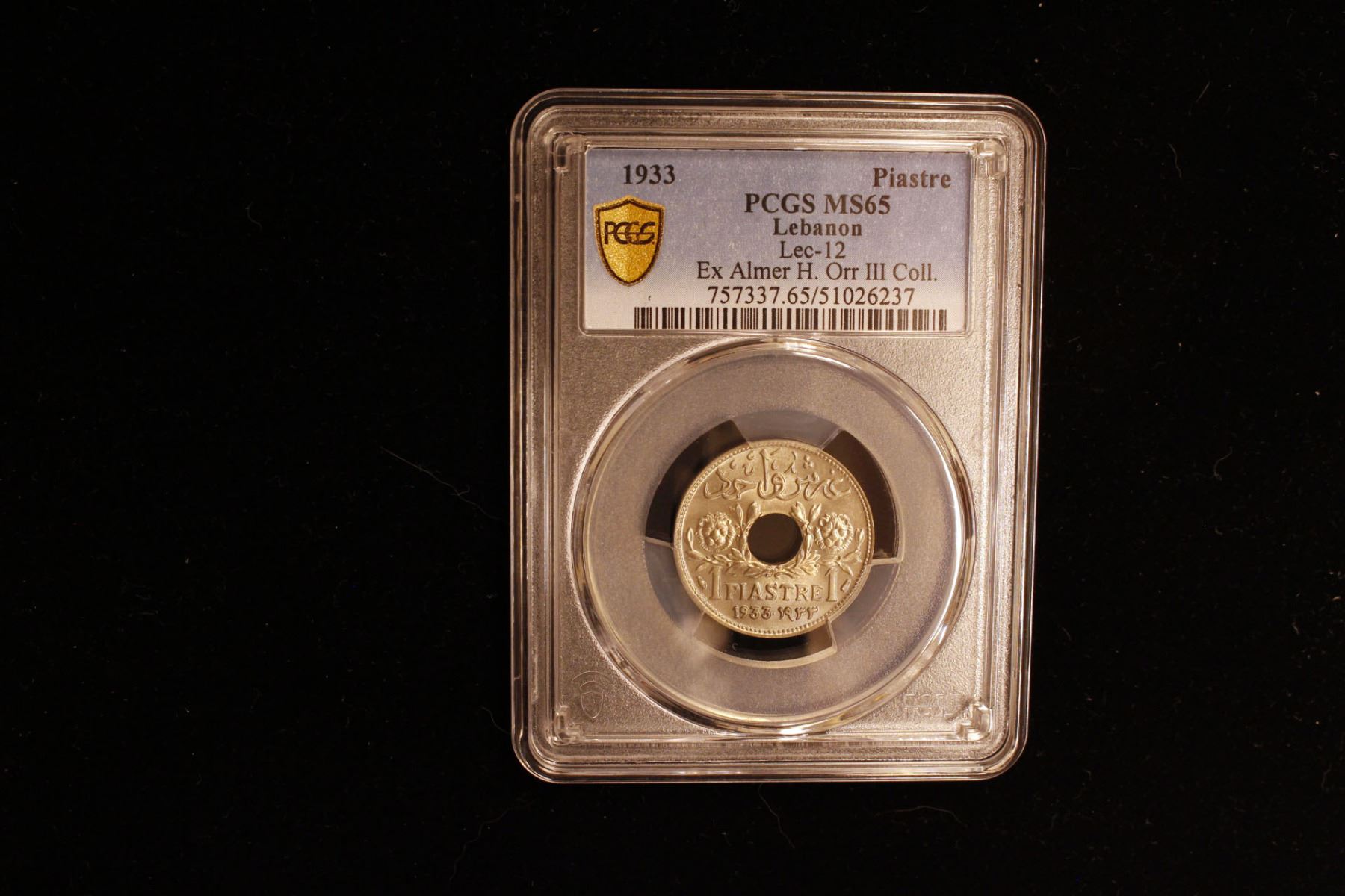 LEBANON: French Mandate, 1 piastre, 1933, KM-3, a superb example, PCGS graded MS65, ex Almer H. Orr III Collection.