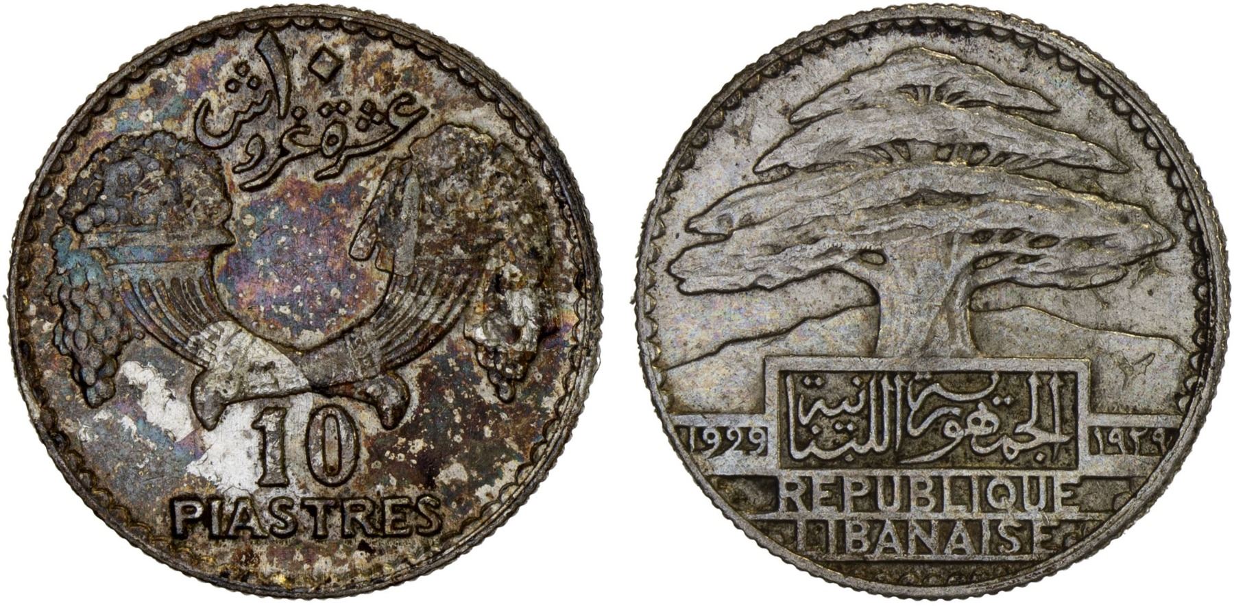 LEBANON: French Mandate, AR 10 piastres, 1929, AU