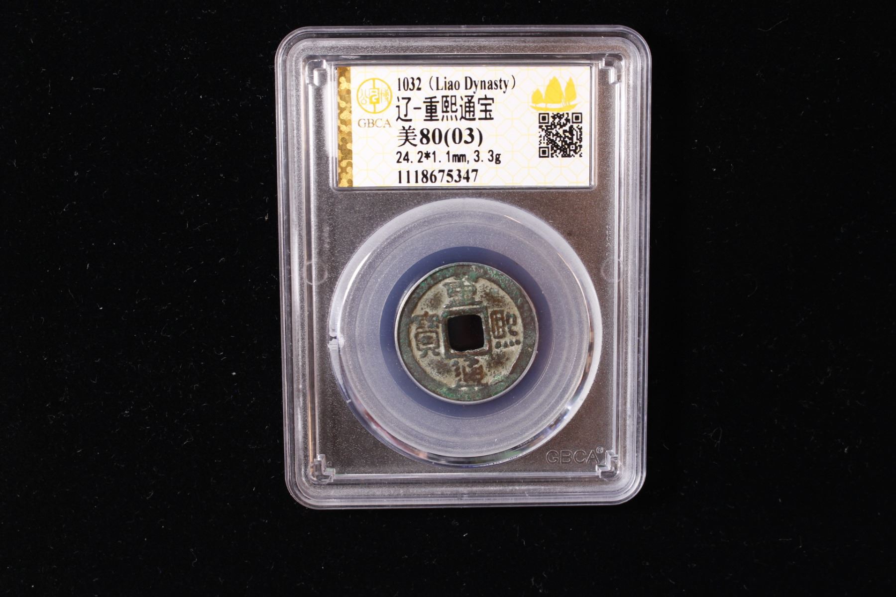 LIAO: Chong Xi, 1032-1055, AE cash (3.3g), H-18.11, graded 80(03) by GBCA Grading Company, repaired, VF, ex Dr. Dirk Löer Collection.