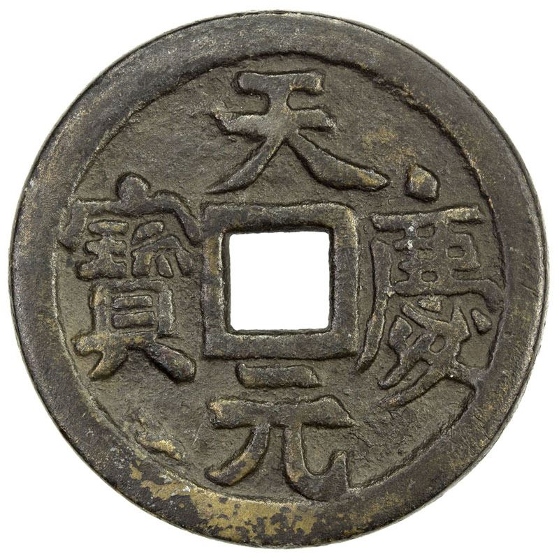 LIAO: Tian Qing, 1111-1120, AE amuletic multiple cash (20.74g), Zeno-16075 (this piece), tian qing yuan bao, bold VF, R, ex Shèngbidébao Collection. Later made issue, likely either Ming or Qing period, with plain square rather than convex square around the central hole.